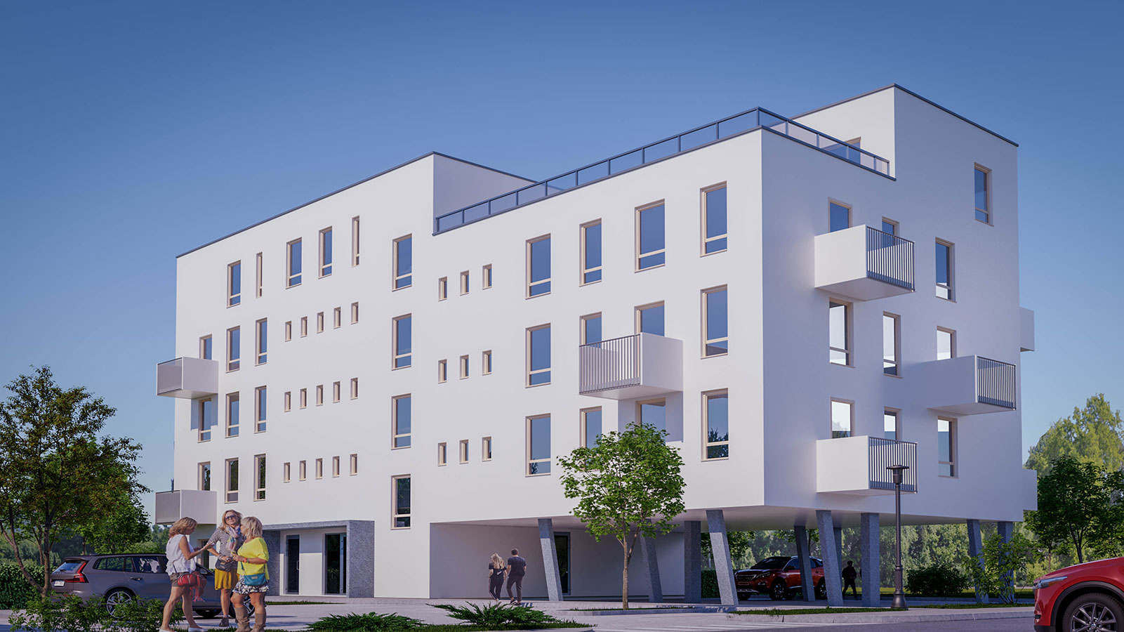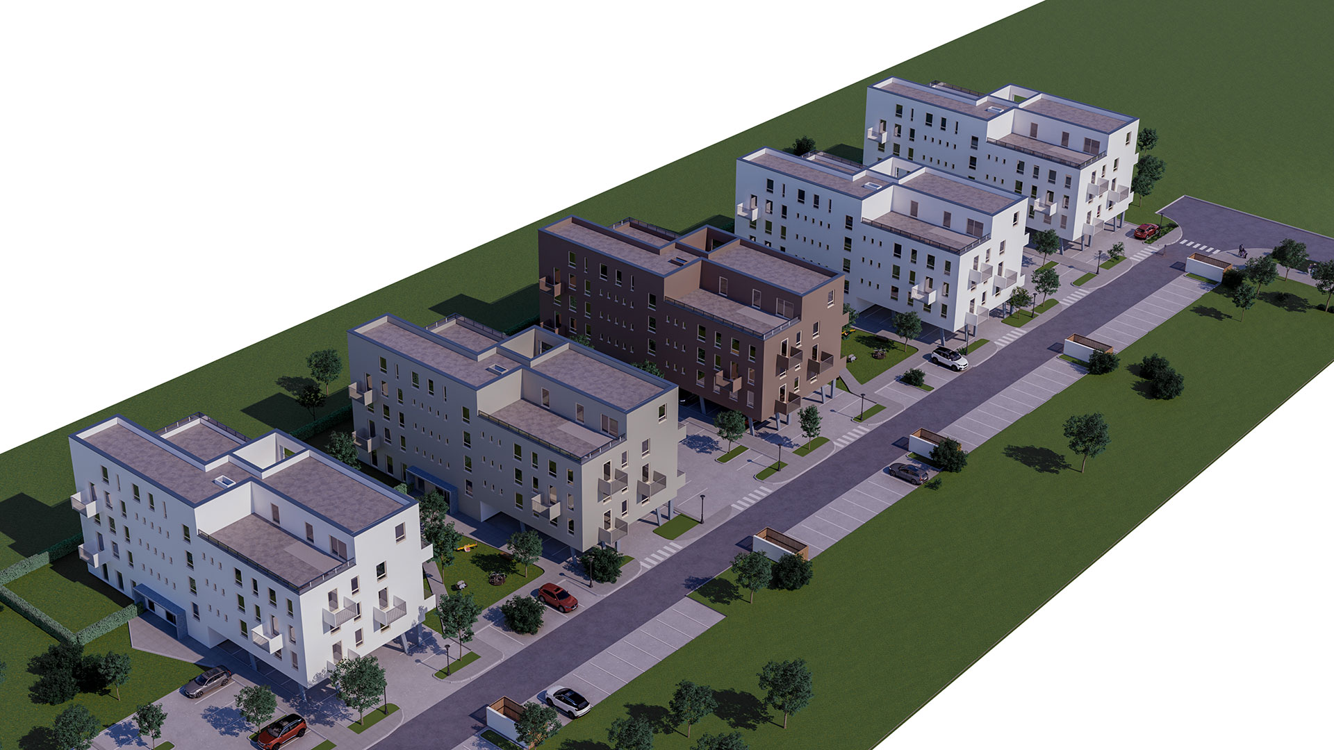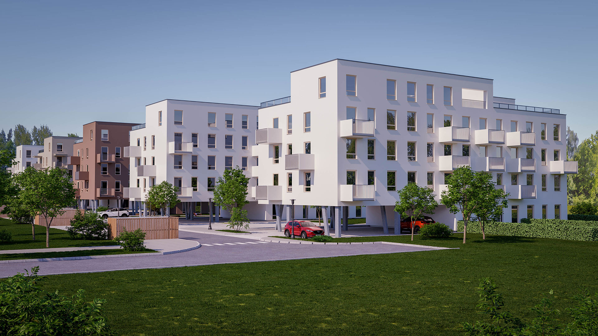 Parkovanie je zabezpečené na vyhradených miestach s možnosťou prekrytia a predprípravou na nabíjacie stanice pre elektromobily. Projekt tiež počíta s vybudovaním detského ihriska a priestorov pre kaviareň či kaderníctvo, čo zvyšuje komfort bývania. Lokalita ponúka výbornú dostupnosť k školám, škôlkam, nákupným centrám a rekreačnej zóne Pažiť s termálnym kúpaliskom a priehradou.
