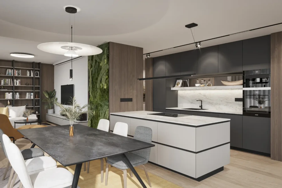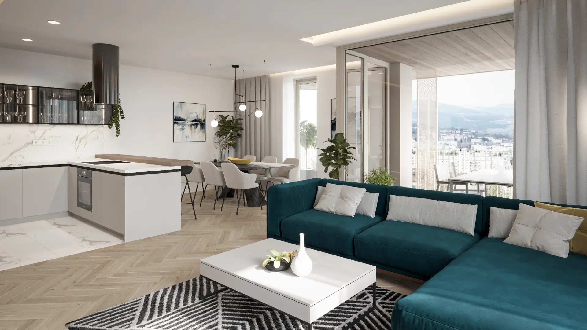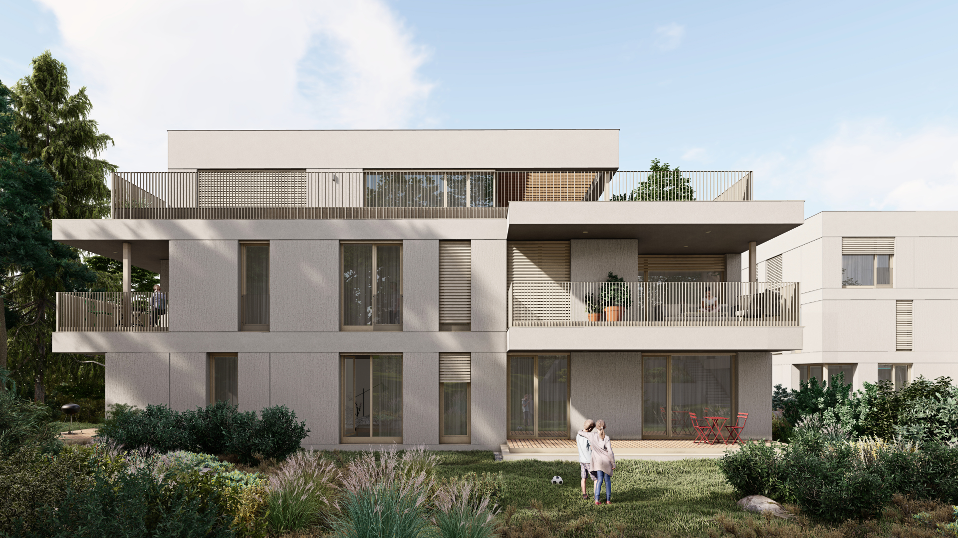 V štandarde bývania nechýba podlahové kúrenie, klimatizácia, hliníkové okná, vonkajšie tienenie ani podzemná garáž. Projekt kladie dôraz na zdravé bývanie – využíva centrálnu rekuperáciu, zelené strechy a solárne panely. Súkromie, kvalita a udržateľnosť sú nosnými piliermi tejto novostavby.