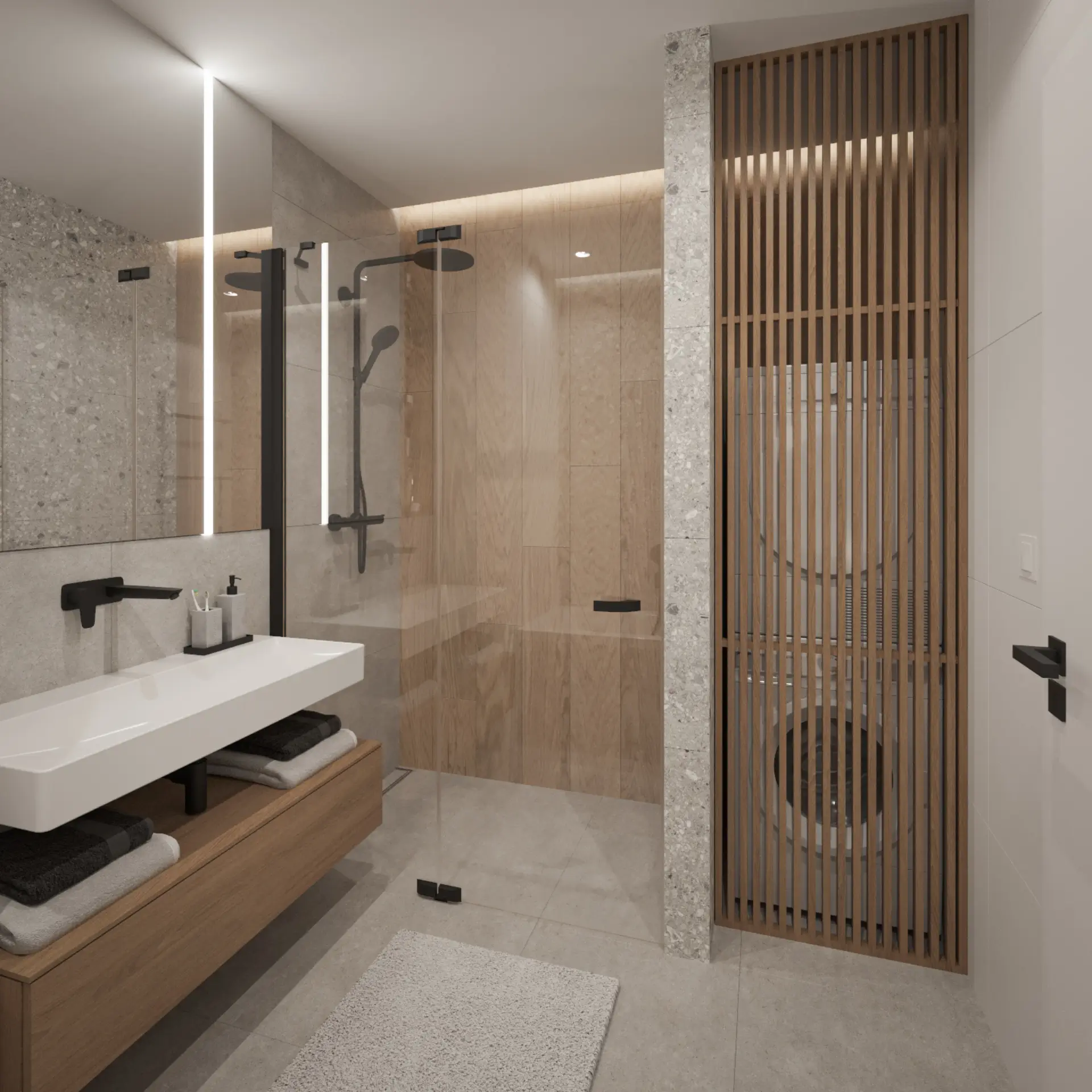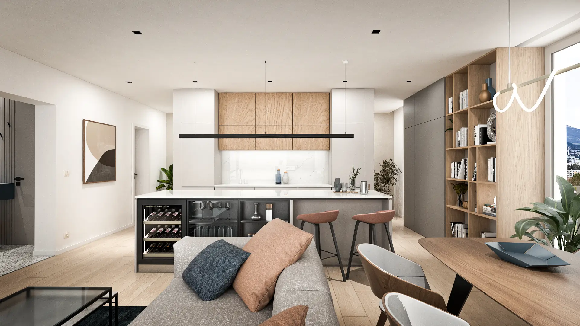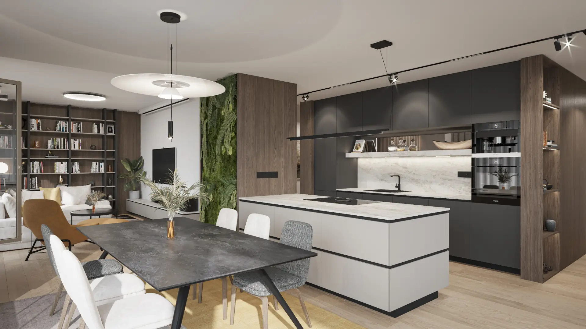 V štandarde bývania nechýba podlahové kúrenie, klimatizácia, hliníkové okná, vonkajšie tienenie ani podzemná garáž. Projekt kladie dôraz na zdravé bývanie – využíva centrálnu rekuperáciu, zelené strechy a solárne panely. Súkromie, kvalita a udržateľnosť sú nosnými piliermi tejto novostavby.