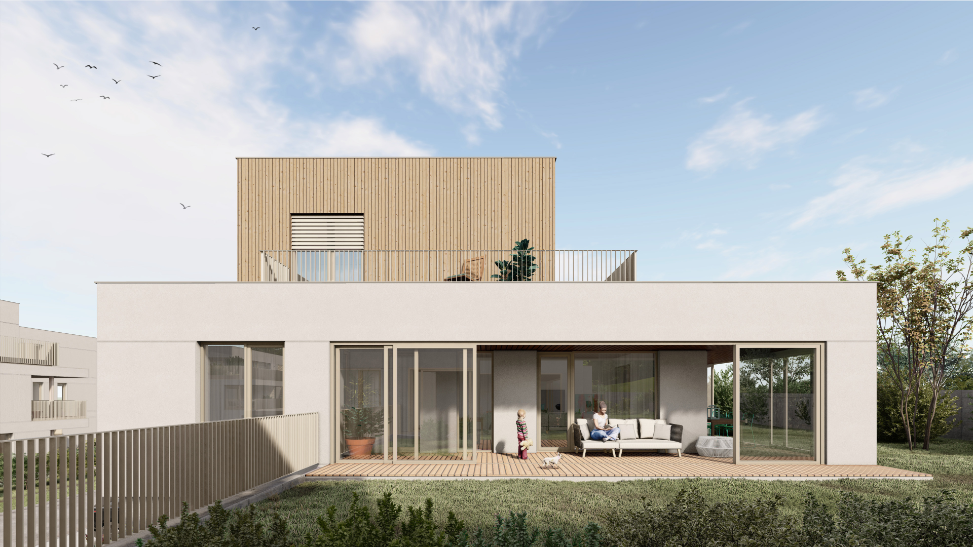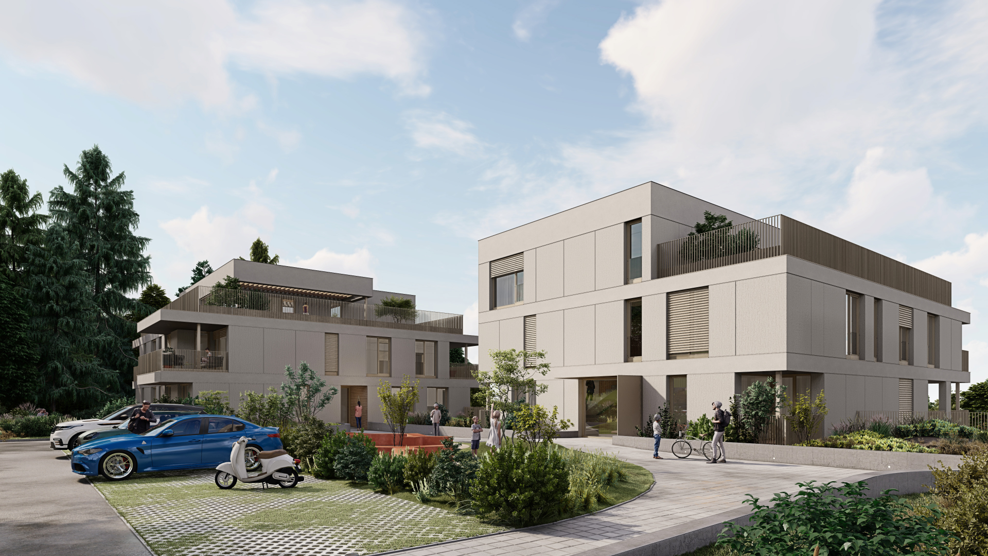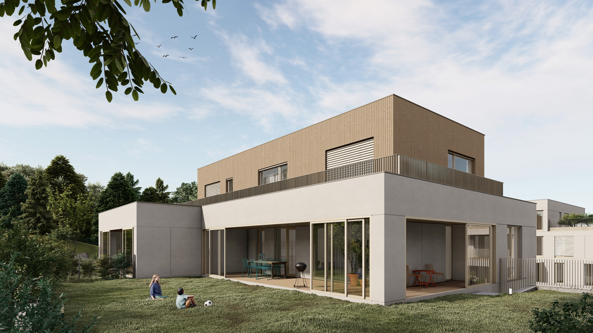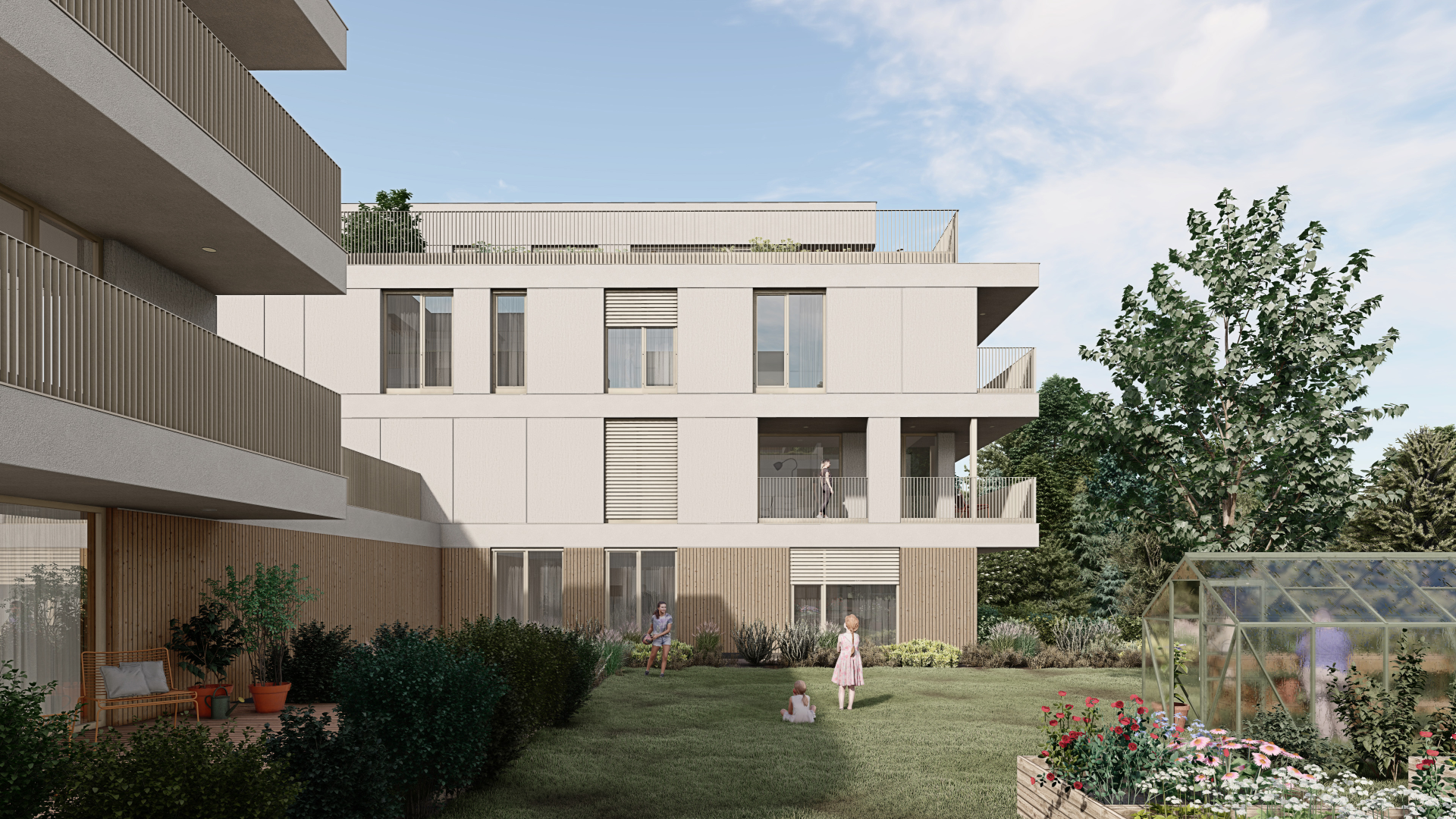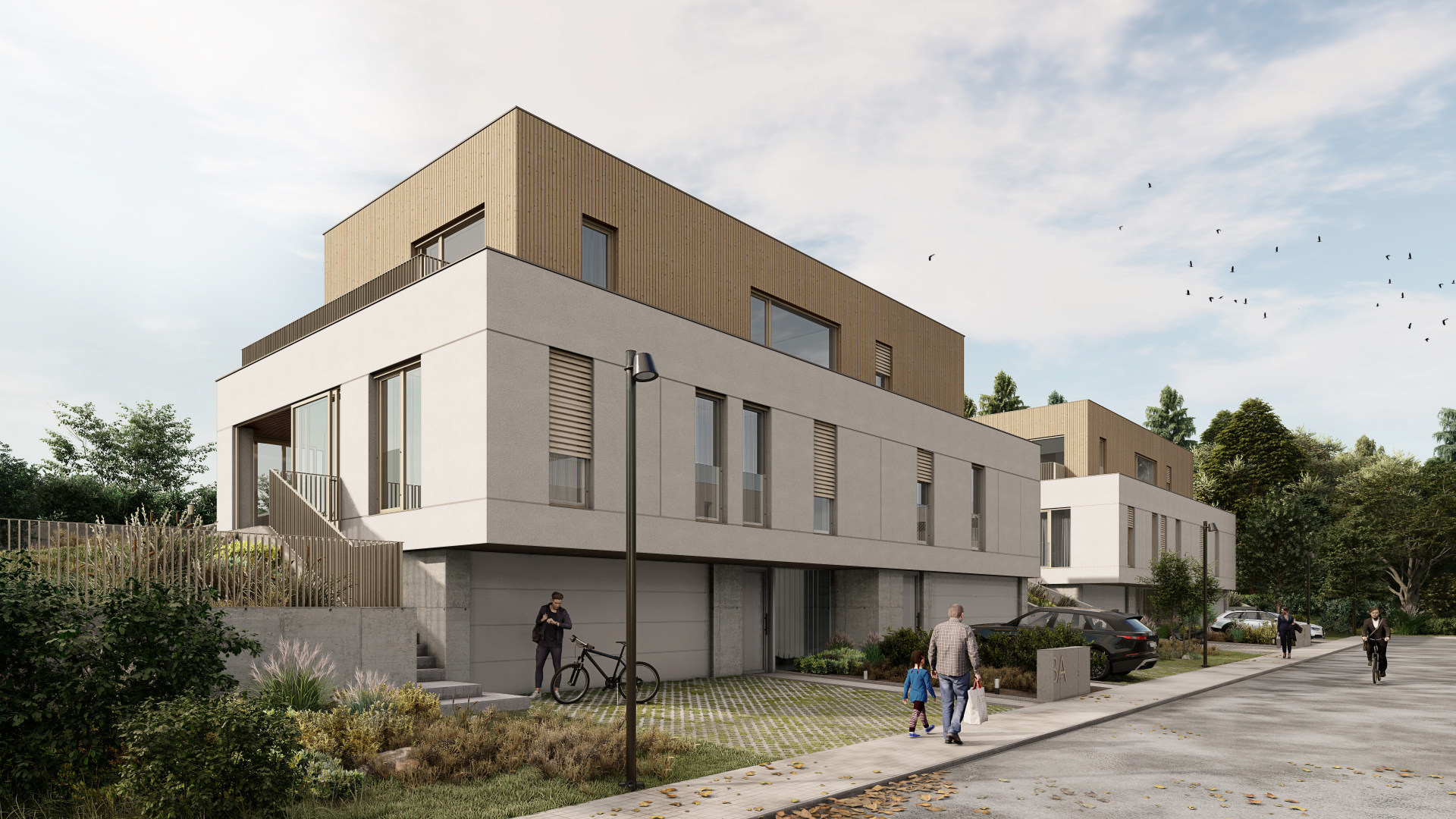 Rodinné domy vo viladomoch ponúkajú vyšší štandard bývania, každý s vlastnou záhradou, dvojgarážou a wellness zónou. Vybrať si možno z verzií so štyrmi alebo piatimi izbami. Projekt je navrhnutý tak, aby spájal komfort s komunitným duchom – bývanie je doplnené o kvalitné technológie a architektúru rešpektujúcu okolie.