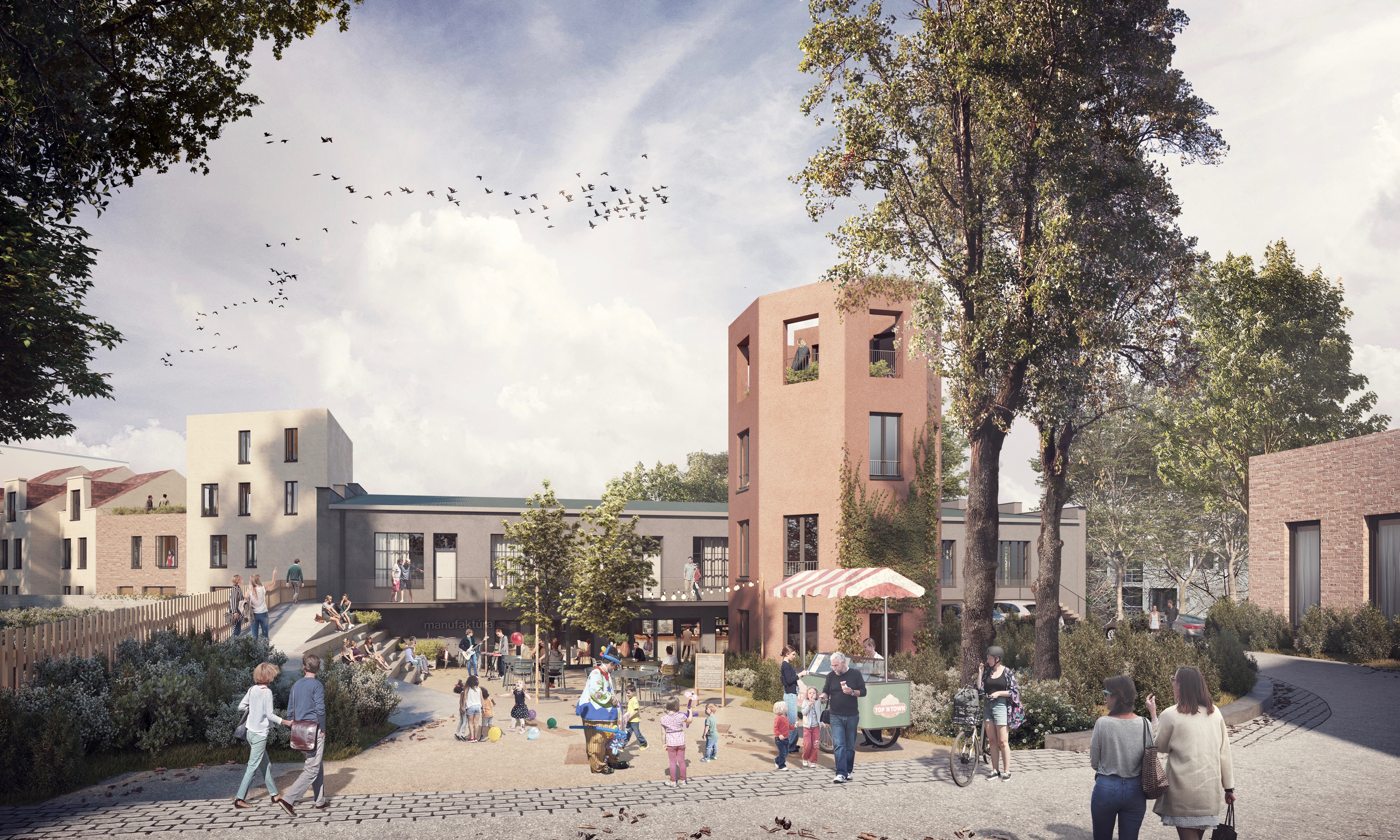 Súčasťou areálu sú aj komunitné a prenajímateľné priestory s industriálnym charakterom, kaviareň, detské ihriská a verejné zóny. Výborná dostupnosť do Bratislavy vlakom aj autom a plná občianska vybavenosť robia z projektu atraktívnu voľbu pre rodiny aj jednotlivcov. Ukončenie prvej etapy sa očakáva v roku 2025.