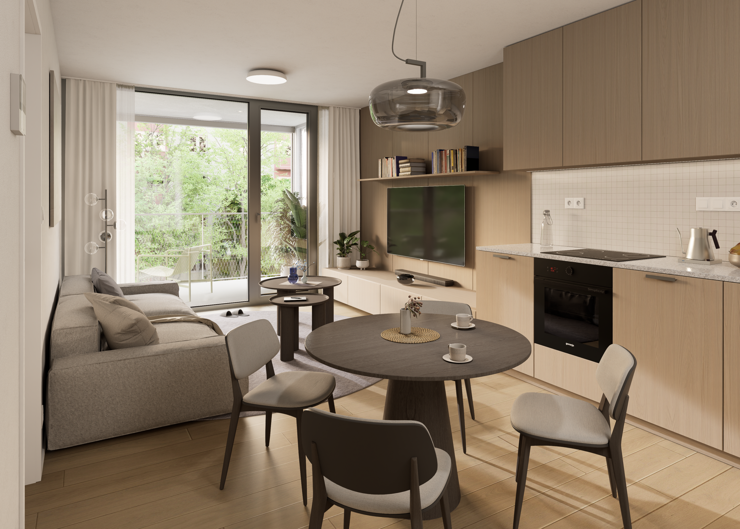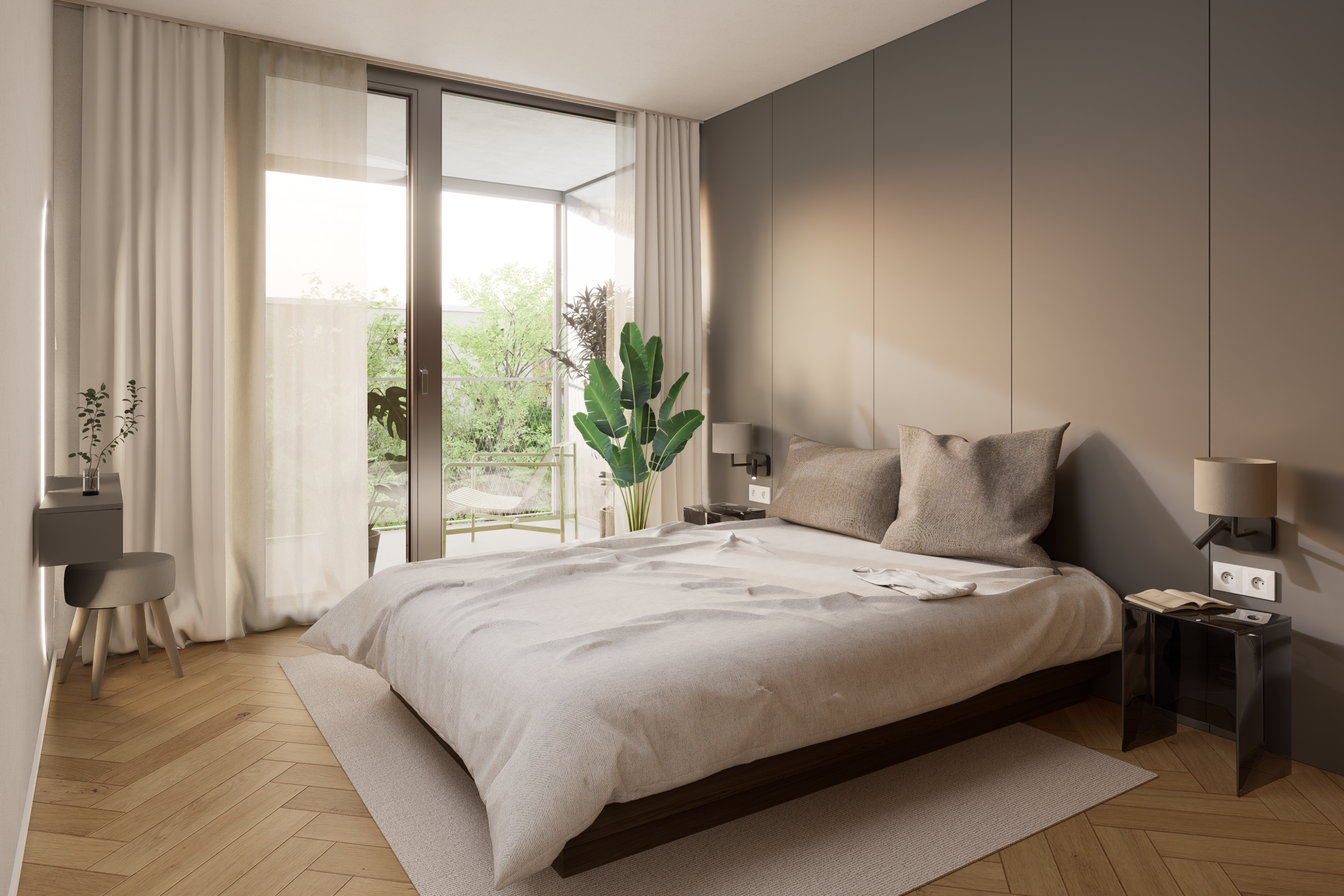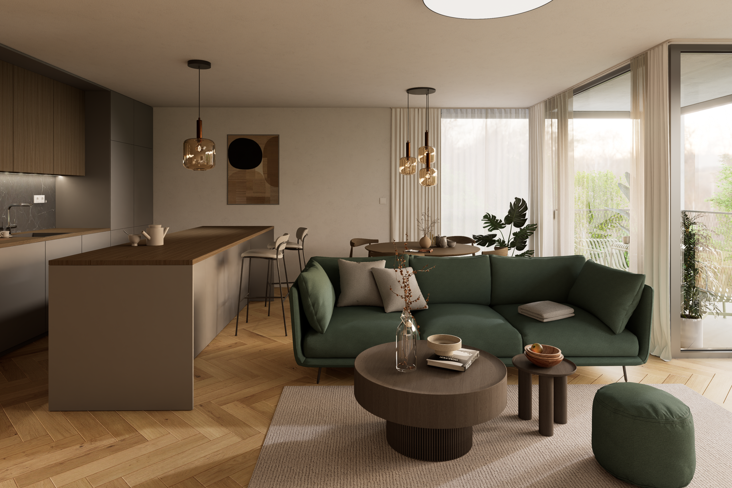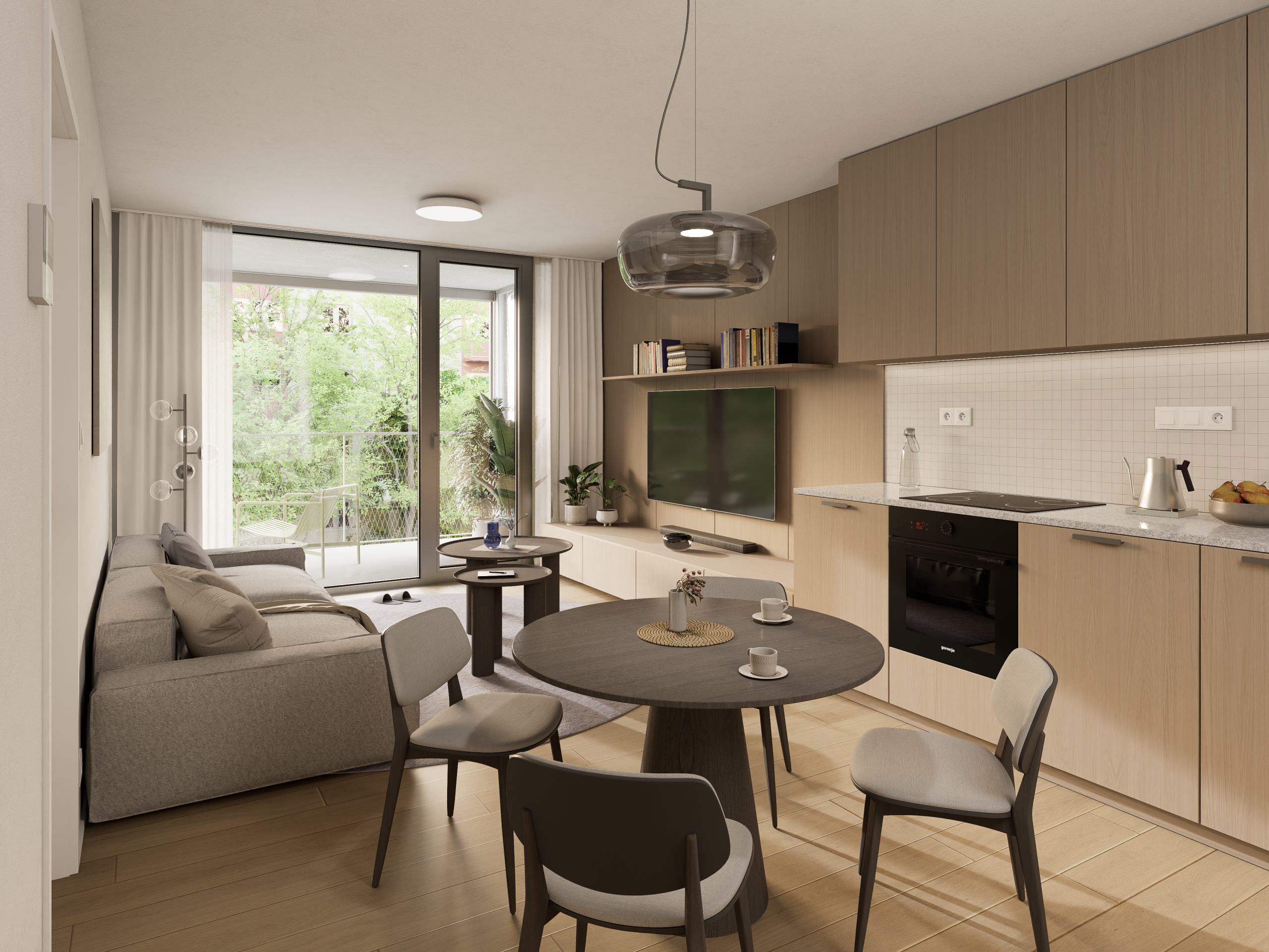 Dispozície bytov sú navrhnuté s dôrazom na vzdušnosť, súkromie a prirodzené presvetlenie. Samozrejmosťou sú priestranné loggie, funkčné úložné riešenia a prepojenie interiéru s exteriérom. Interiéry ponúkajú drevené podlahy, veľkoformátové obklady a kvalitnú sanitu. Štandard zahŕňa stropné kúrenie a chladenie, rekuperáciu, smart tienenie a fotovoltiku.