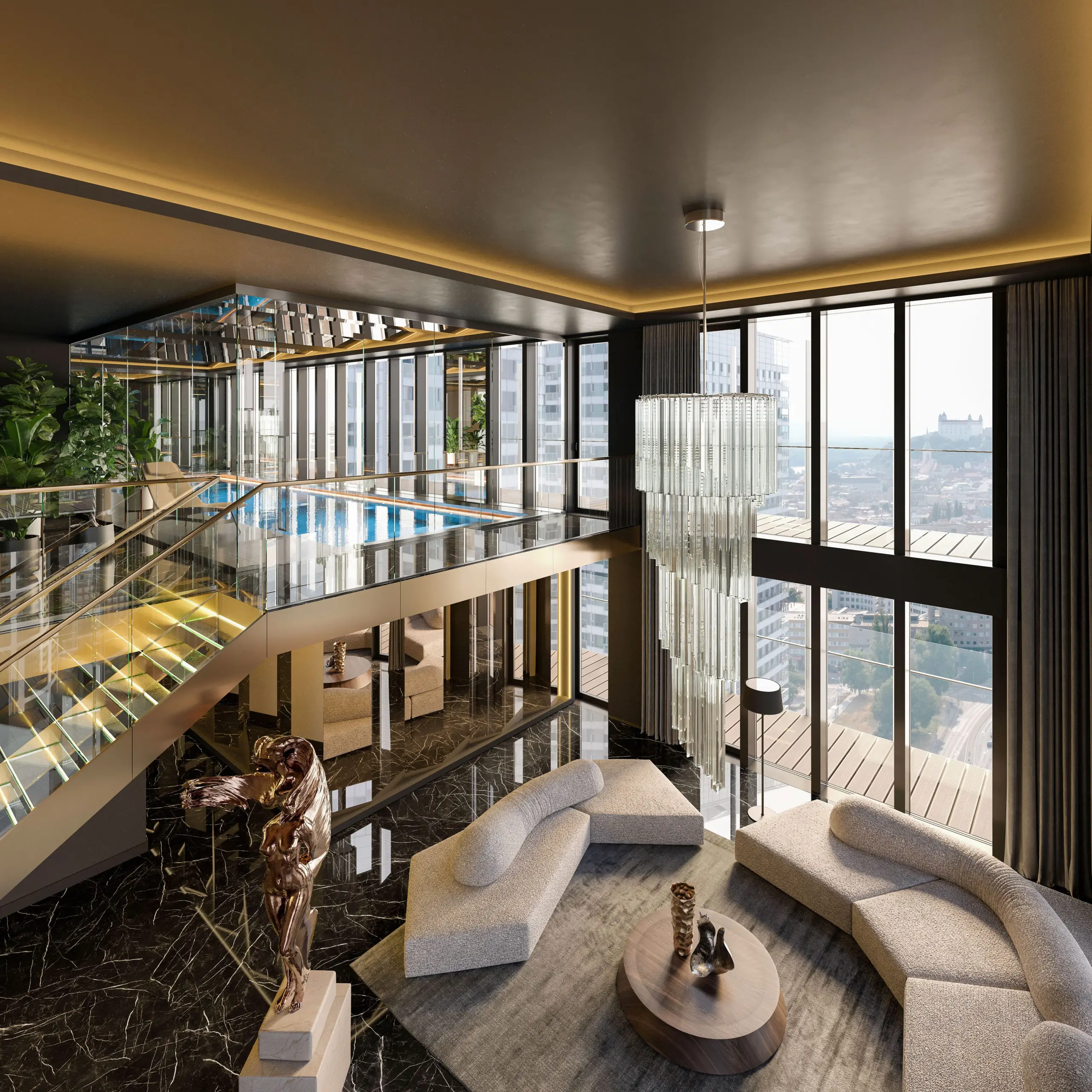 Obyvatelia majú k dispozícii množstvo služieb priamo v komplexe – od obchodov a reštaurácií po wellness zónu či fitness centrum. Projekt počíta aj s podzemným parkovaním a bezpečnostným systémom, ktorý zaisťuje komfort a súkromie. Pri návrhu budovy sa myslelo aj na energetickú efektivitu a moderné technológie.