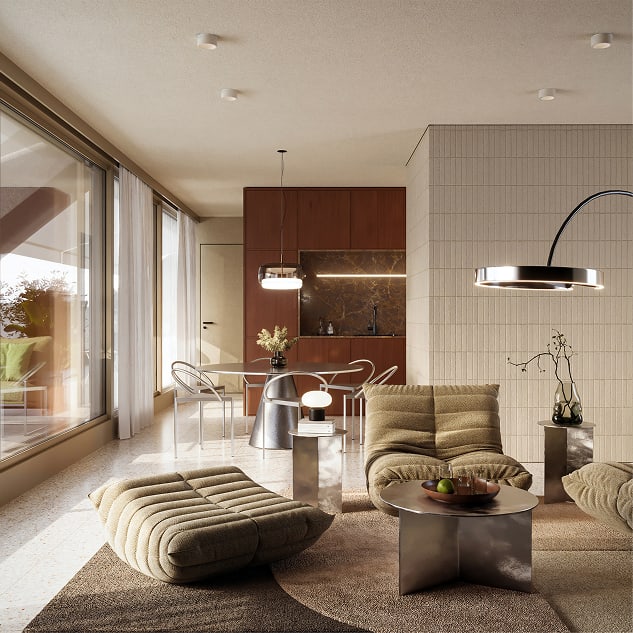 Byty sú navrhnuté tak, aby pracovali s prirodzeným svetlom, výhľadmi a logickou orientáciou. Krídlo na Mýtnu ponúka menší počet bytov na podlaží a viac súkromia, zatiaľ čo časť na Šancovej je orientovaná aj na kompaktné mestské bývanie smerom do dvora. V projekte sa objavujú efektívne menšie byty aj väčšie rohové a strešné jednotky, pričom dôraz zostáva na čistote priestoru a funkčnosti. Mýtna 37 tak pôsobí ako mestské bývanie pre tých, ktorí chcú adresu v centre, ale zároveň ocenia komornejší charakter domu.