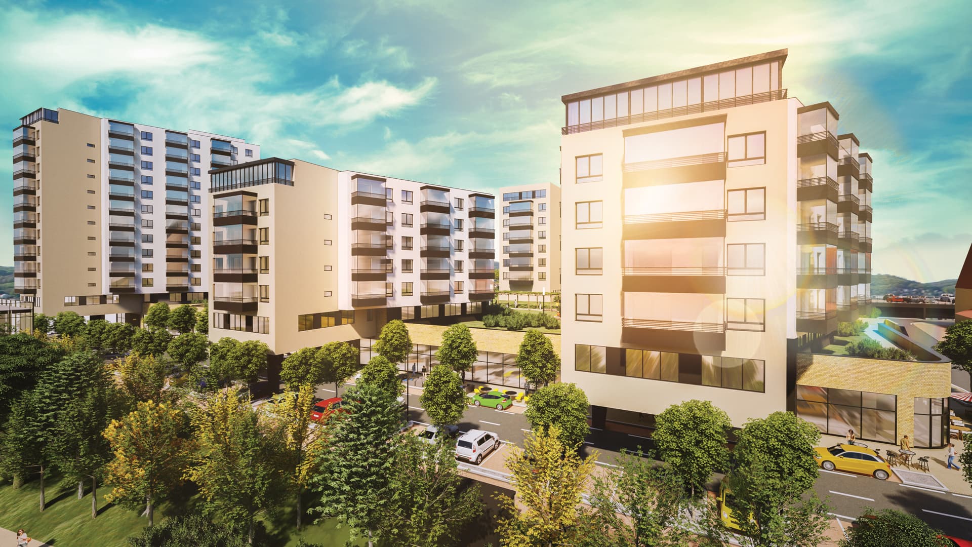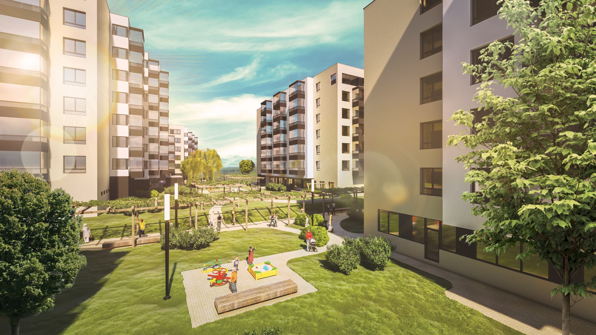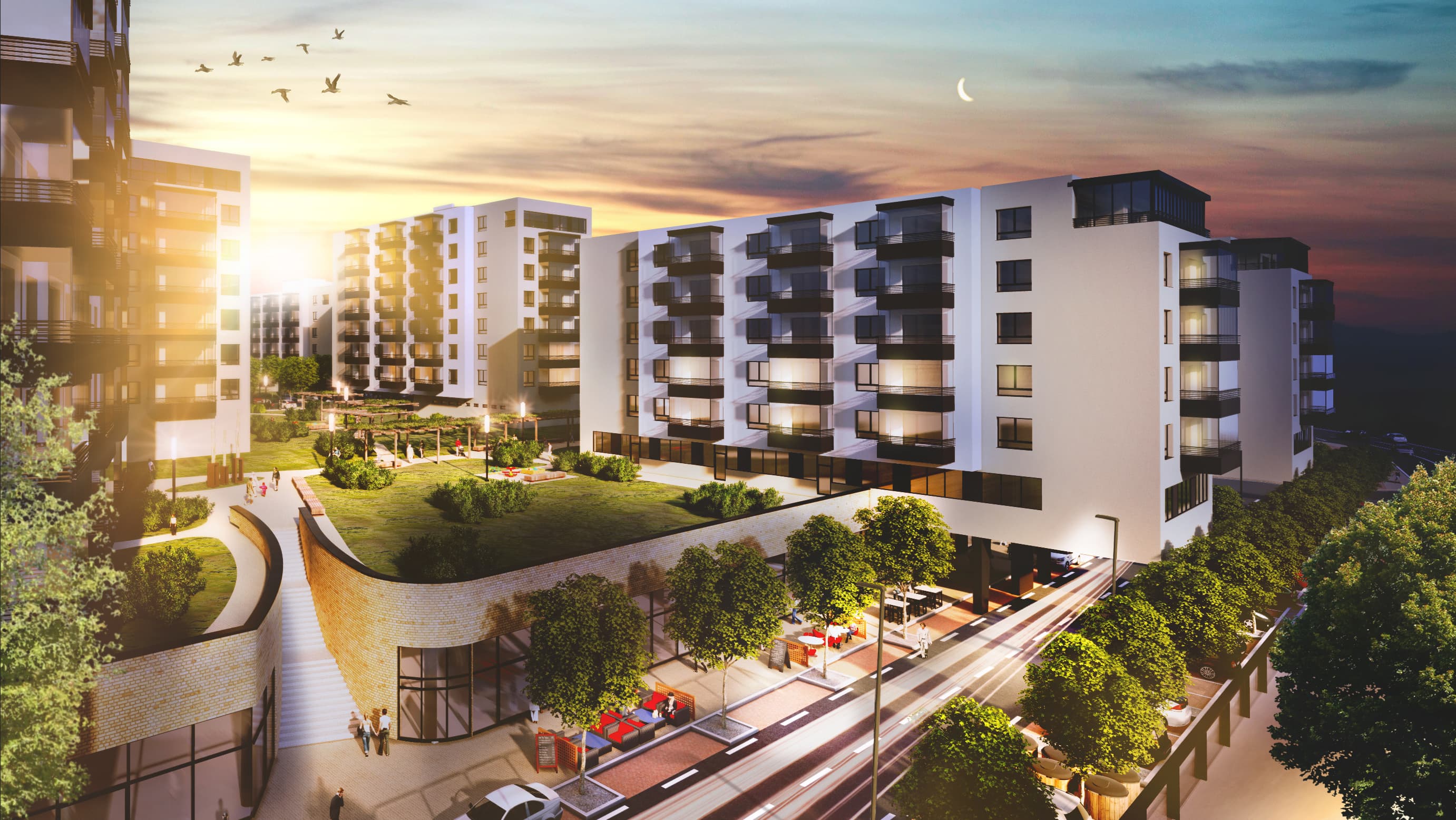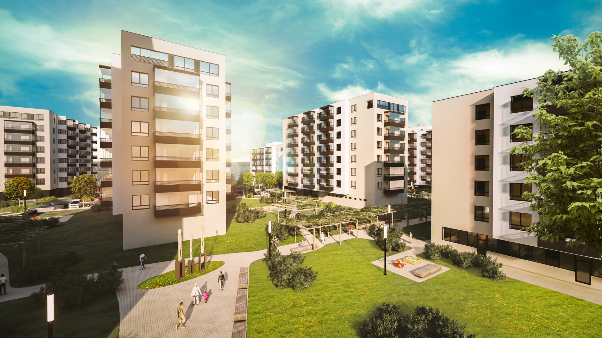Výnimočnosť projektu spočíva v premyslenej práci s verejným priestorom – parky, zelené strechy a ihriská sú prístupné nielen obyvateľom, ale aj susedom z okolia. Architektonicky projekt rešpektuje pôvodné výškové limity lokality, čím zachováva miestne výhľady. K dispozícii sú podzemné garáže, ktoré uvoľnili povrch pre zeleň a komunitný život.