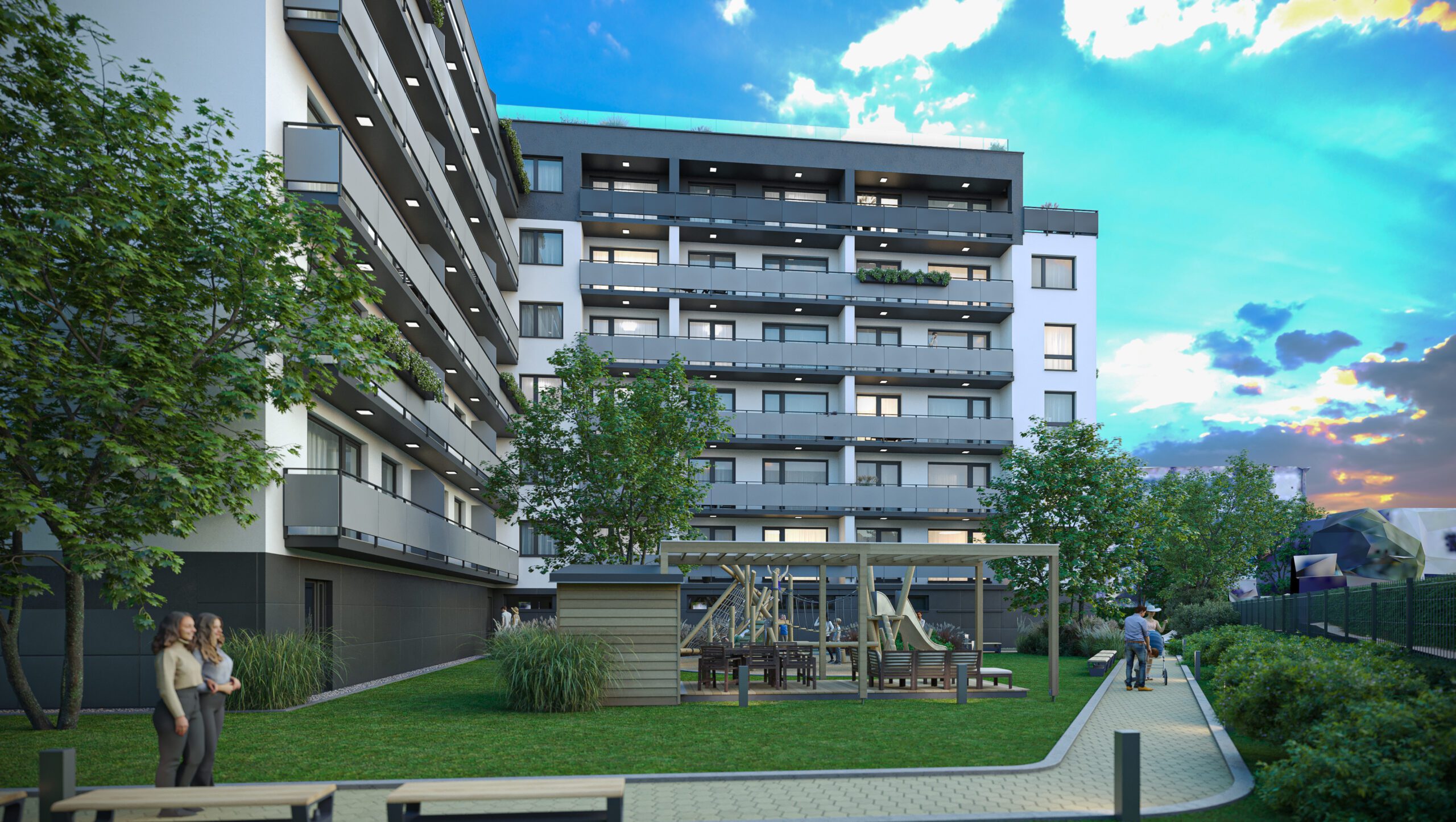 Projekt Slnečná strana prináša moderné bývanie v novovybudovanej zóne Galvaniho v Ružinove. Bytový dom je samostatne osadený a dopravne obslúžený priamo z Ivanskej cesty. Vďaka uzatvorenému vnútrobloku a juhozápadnej orientácii objektu ponúka pokojné prostredie s výhľadom na parkovú zeleň a komunitné priestory.