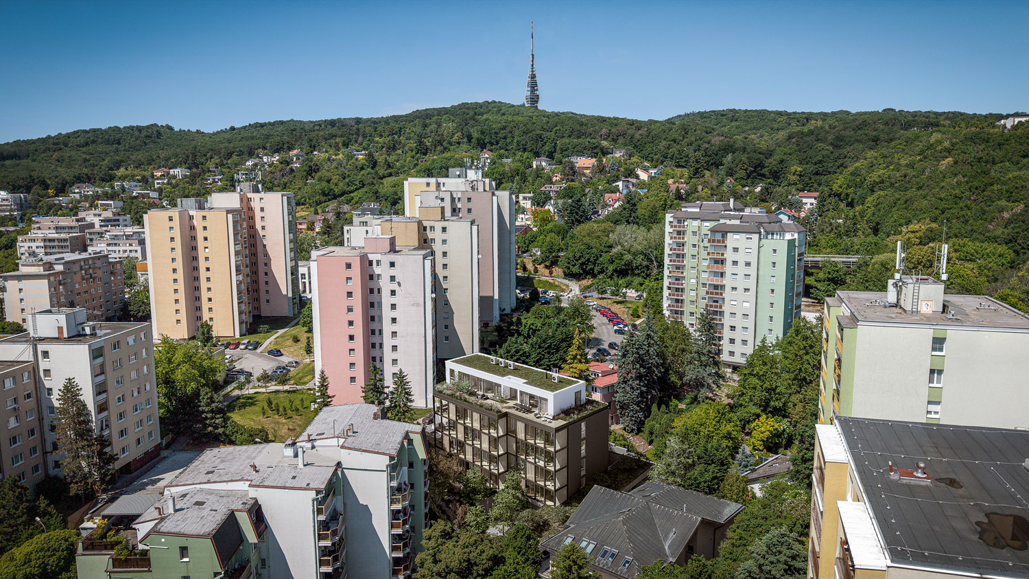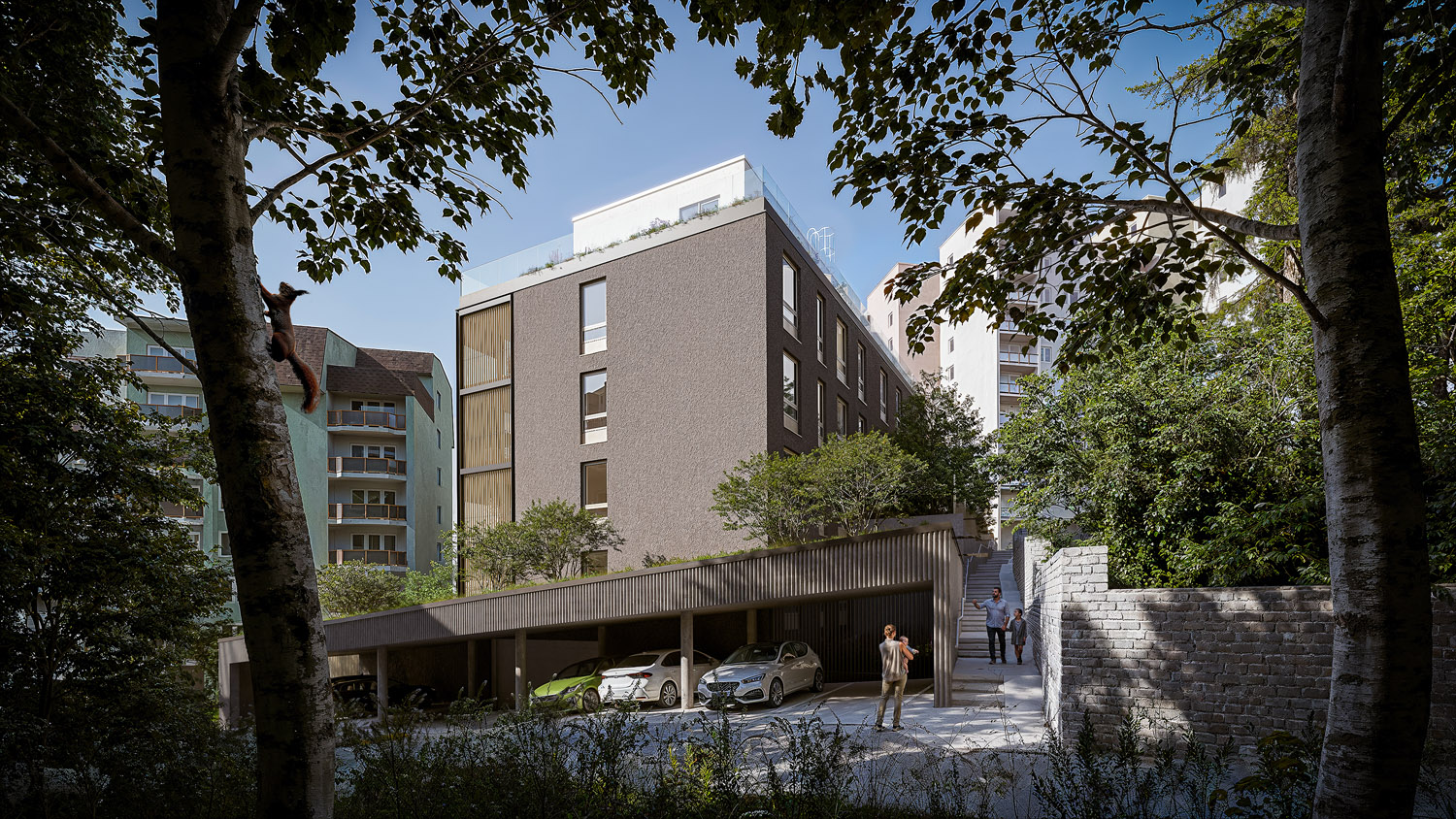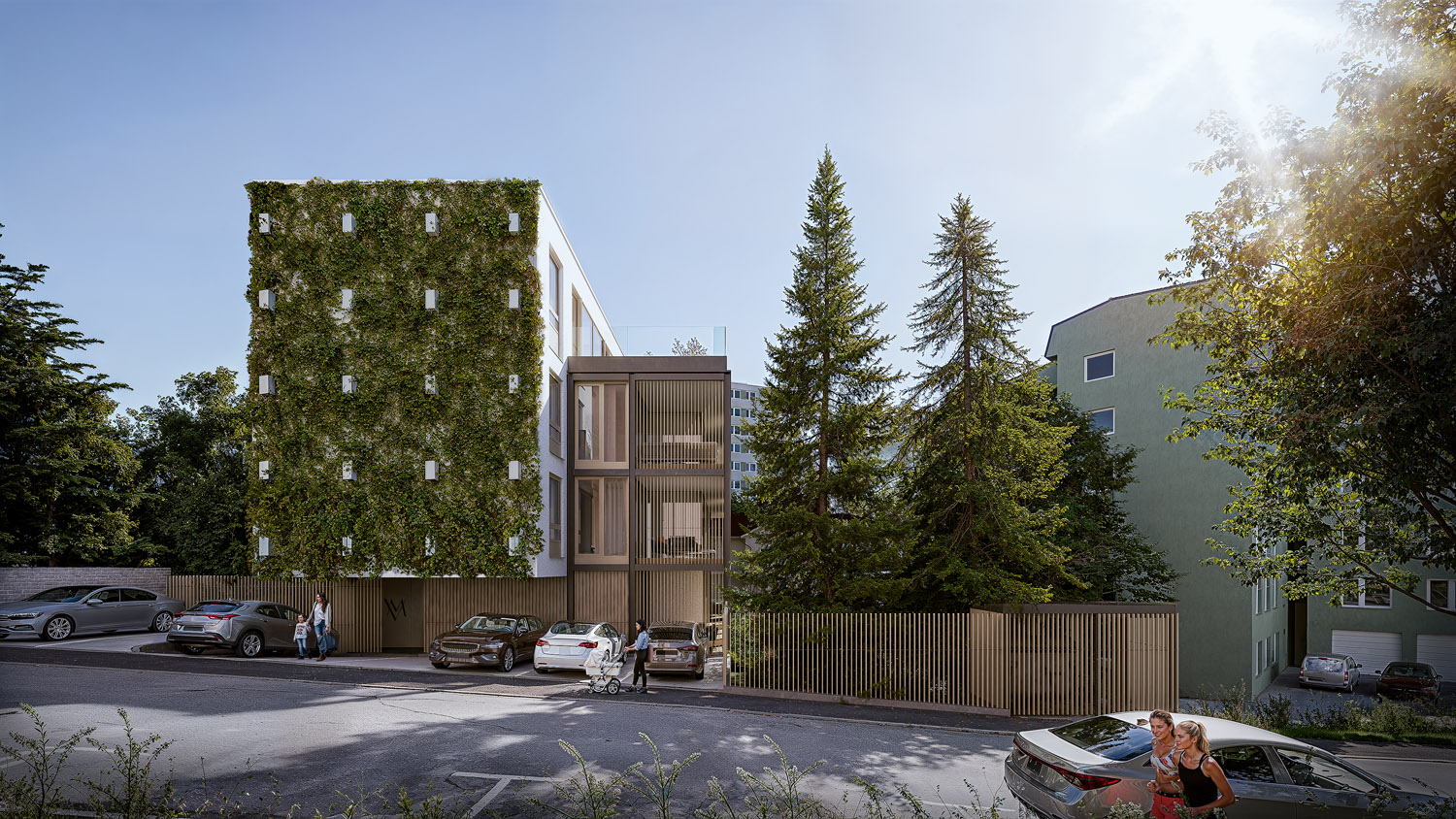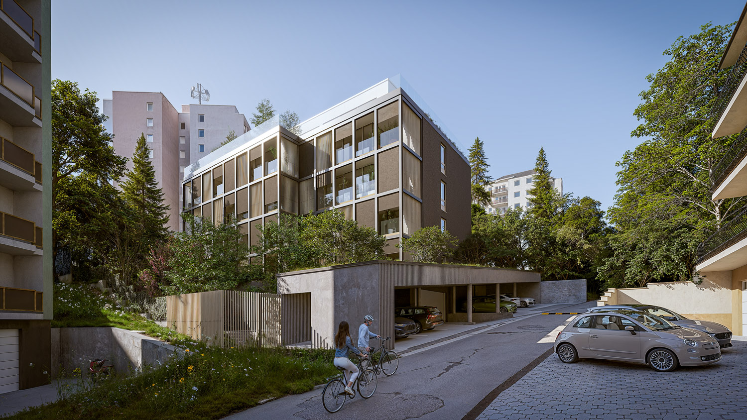 Štandard zahŕňa podlahové vykurovanie, izolačné trojsklá, exteriérové žalúzie a prípravu na klimatizáciu, čo zabezpečuje komfortné bývanie počas celého roka. Obyvatelia budú mať k dispozícii vnútorné parkovanie, ktoré zvyšuje pohodlie a bezpečnosť. Premyslené dispozičné riešenia a vysoký technický štandard robia z tohto projektu atraktívnu voľbu pre náročnejších klientov.