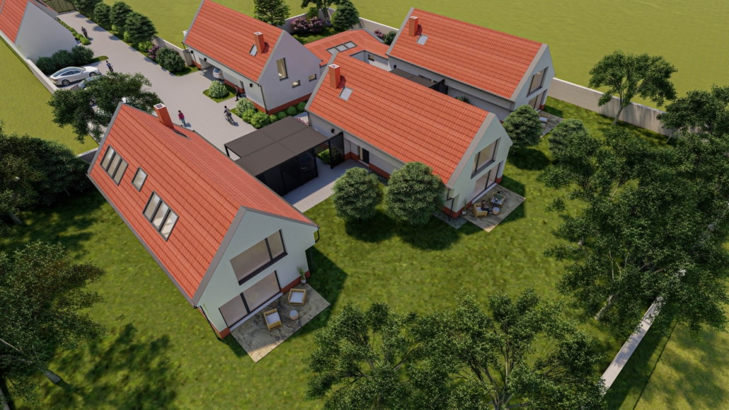 Každý dom disponuje vlastným pozemkom o výmere od 528 m² do 660 m² a úžitkovou plochou od 153,5 m² do 210,6 m². Domy sú vyhotovené v štádiu „holodom“, s možnosťou dokončenia na kľúč podľa dohody. Súčasťou sú dve parkovacie miesta a spoluvlastnícky podiel na spoločnom pozemku s príjazdovou komunikáciou.