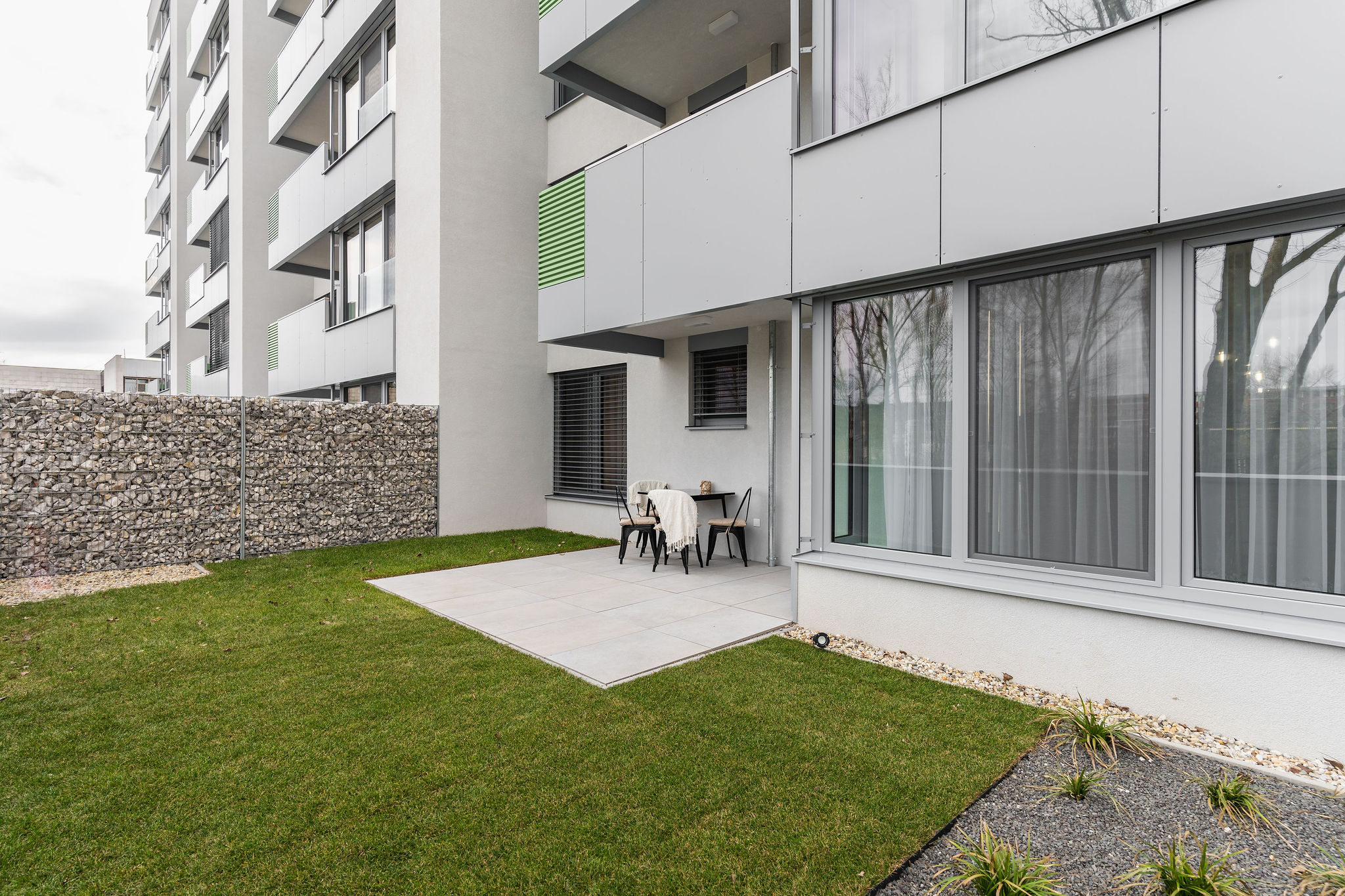 Vysoký štandard zahŕňa tienenie, sieťky proti hmyzu, predprípravu na chladenie a podzemné parkovanie. Okolie je parkovo upravené, doplnené o detské ihrisko a oddychové zóny. V blízkosti sa nachádza Rosnička, zimný štadión a cyklotrasy, ktoré vedú až na Devínsku Kobylu.