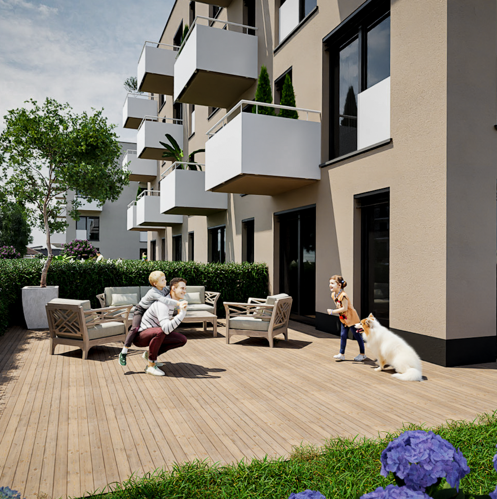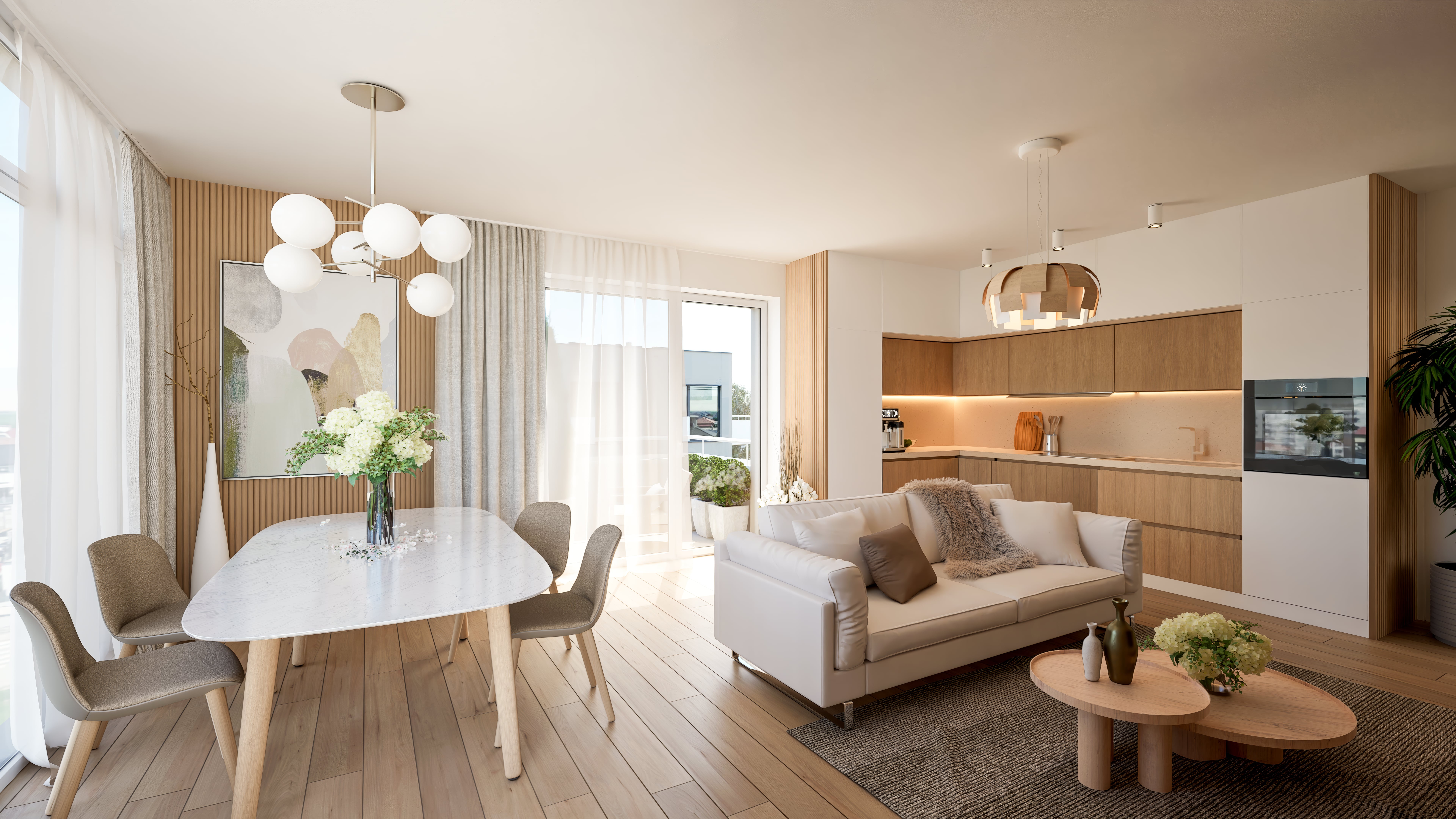Byty sú vybavené nadštandardne: v cene je parkovanie, kobka, klimatizácia, elektrické žalúzie a návrh interiéru. Projekt kladie dôraz na kvalitu a ekologické riešenia, čím vytvára príjemné a moderné bývanie.