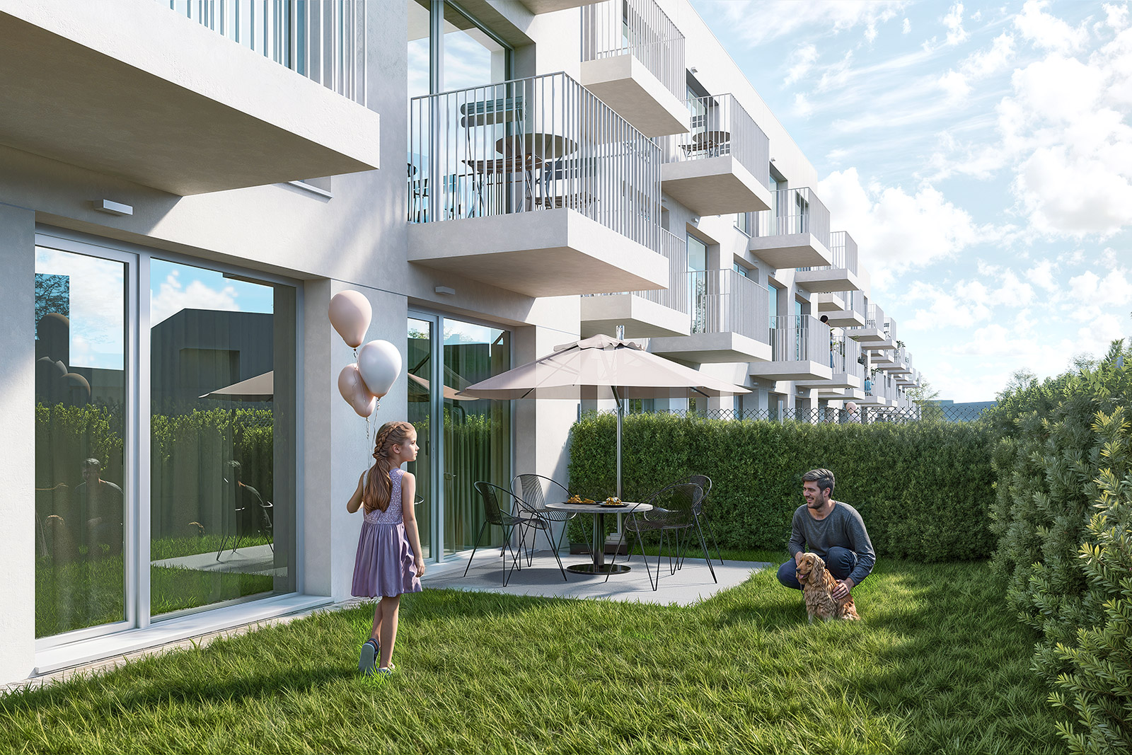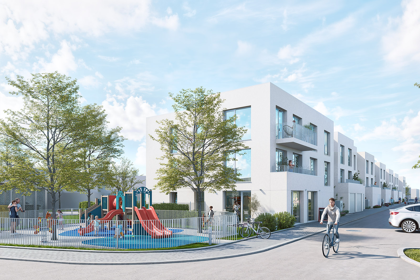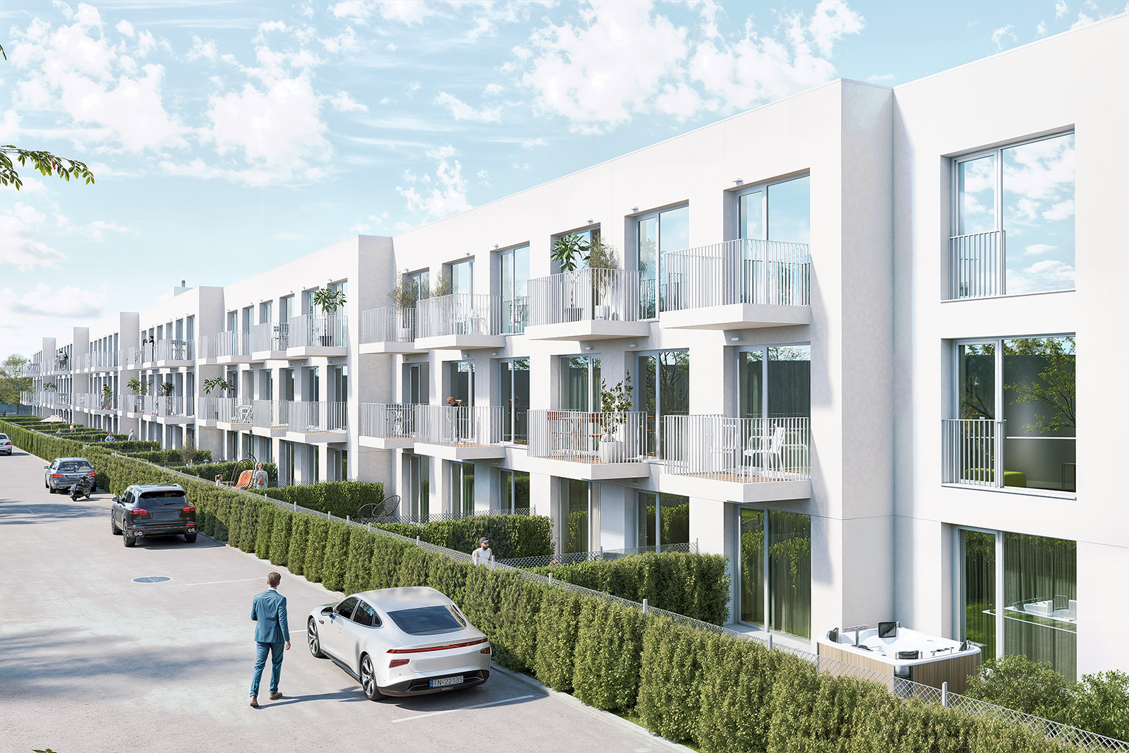 Štandard zahŕňa dvere, podlahy, dlažby, obklady aj sanitu, s možnosťou výberu farieb a dizajnu; klimatizáciu si možno namontovať ešte pred nasťahovaním. Projekt ponúkne 84 vonkajších parkovacích miest a 12 garáží, pivničné kobky na každom podlaží, kaviareň a detské ihrisko v areáli.
