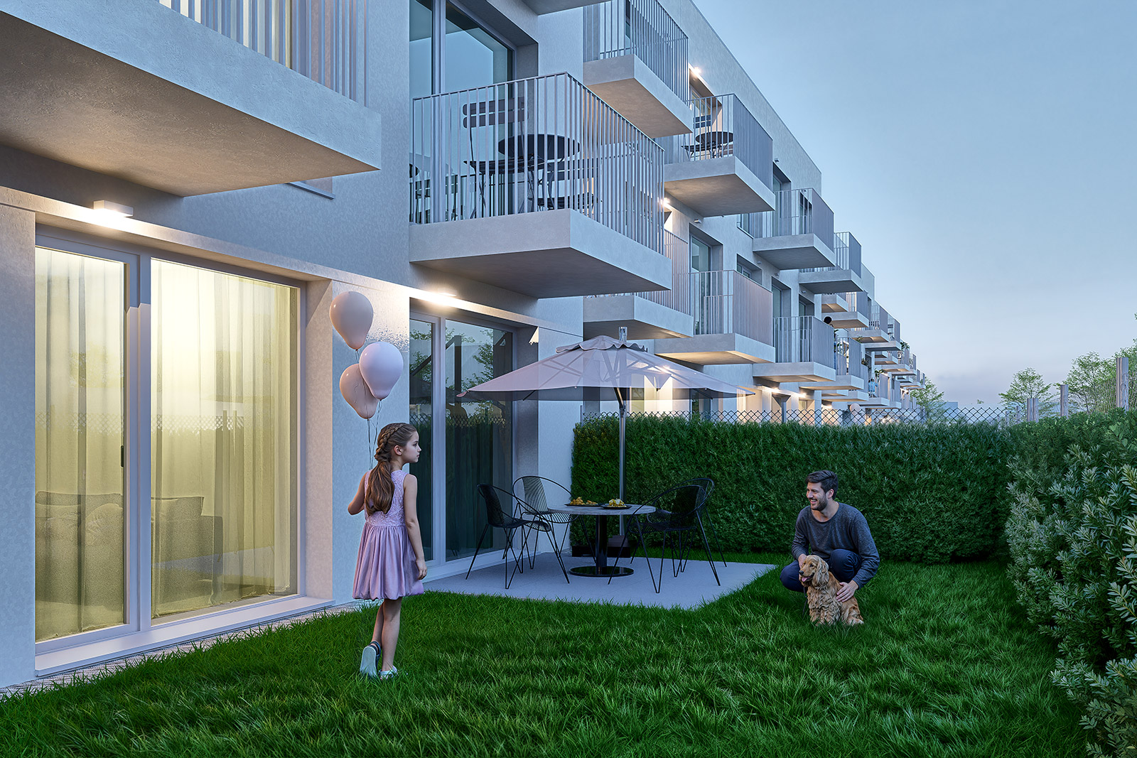 Aurora Residence je moderný projekt v Ivanke pri Dunaji s dôrazom na svetlo, funkčné dispozície a komunitný charakter. V ponuke je 29 dvojizbových a 37 trojizbových bytov; každý má predzáhradku, balkón alebo terasu. V 3‑izbových bytoch je orientácia riešená tak, že spálňa je na sever a obývačka na juh.