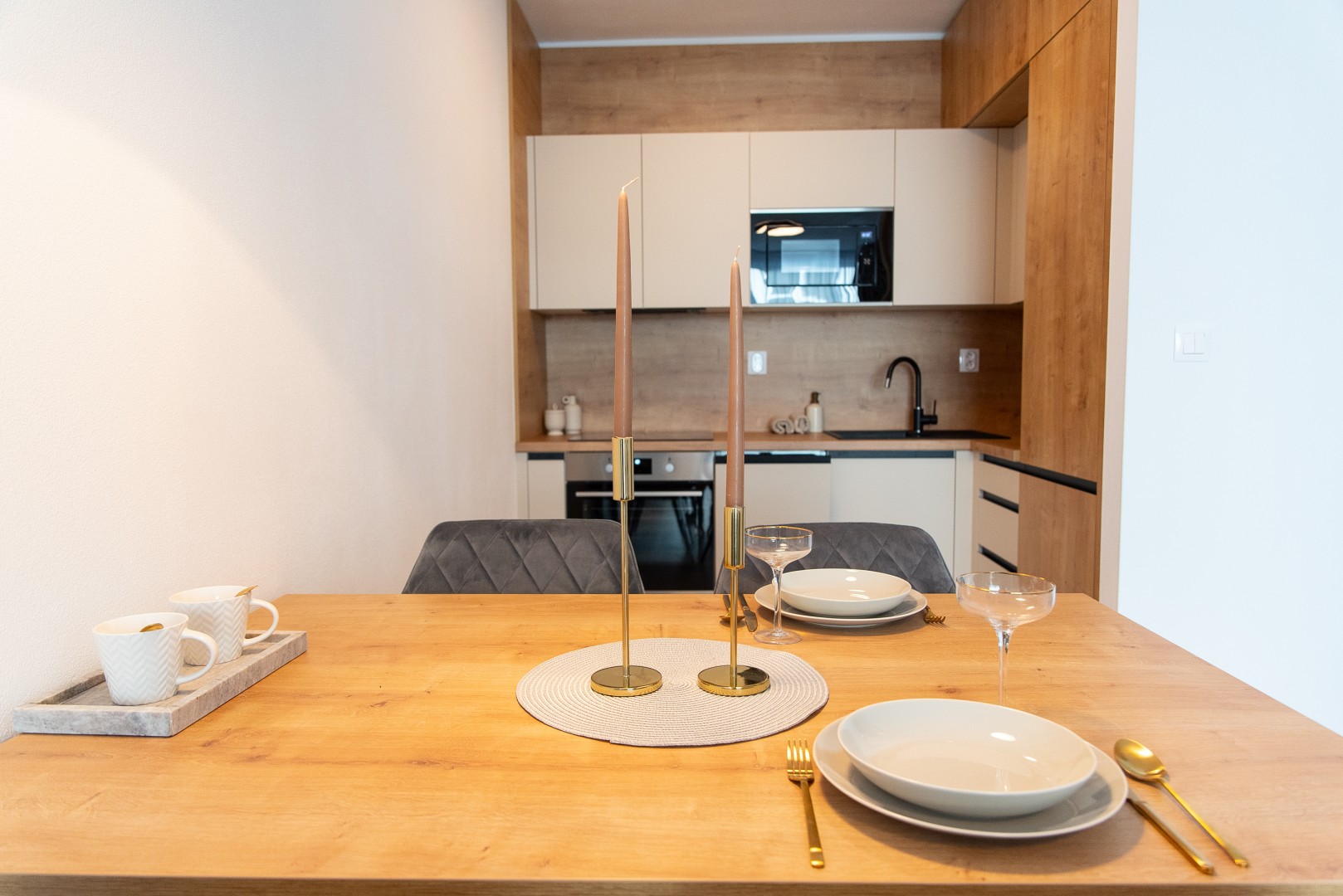 Byty sú k dispozícii v štandarde s kvalitným interiérom a prípravou na klimatizáciu. Za doplatok je možné zvoliť nadštandardné vybavenie s vyššou kvalitou materiálov a širším výberom dekorov.