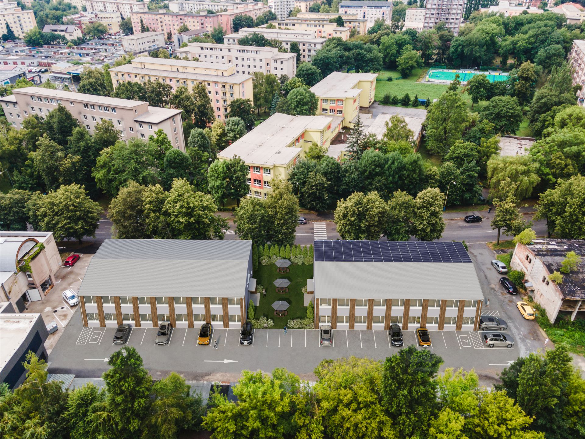 Významným prvkom je aj flexibilný priestor po bývalej reštaurácii, ktorý sa dá prispôsobiť na kancelárie, showroom alebo obchodné prevádzky. Lokalita má vynikajúcu dostupnosť – do centra mesta je to 15 minút pešo, v blízkosti sú nákupné možnosti, zdravotnícke zariadenia aj park Anička.
