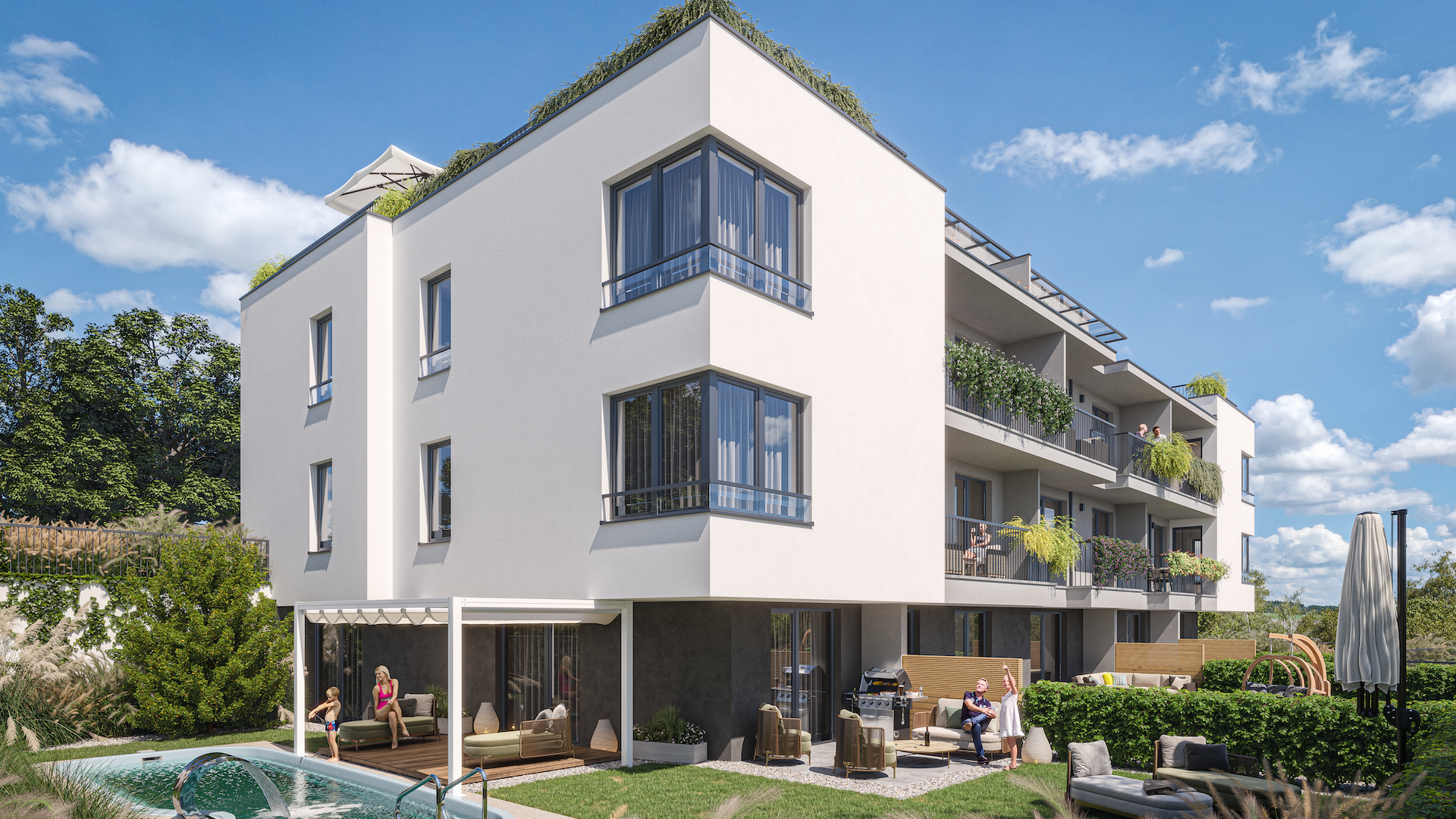 Byty sú navrhnuté s dôrazom na komfort a kvalitu. Ponúkajú dispozície od 1-izbových po 3-izbové jednotky, pričom niektoré disponujú priestrannými terasami alebo predzáhradkami. Každý byt je vybavený podlahovým vykurovaním, ktoré zabezpečujú tepelné čerpadlá vzduch-voda. Projekt využíva aj fotovoltické panely na výrobu obnoviteľnej energie, čím dosahuje energetickú triedu A0.tlacovespravy.