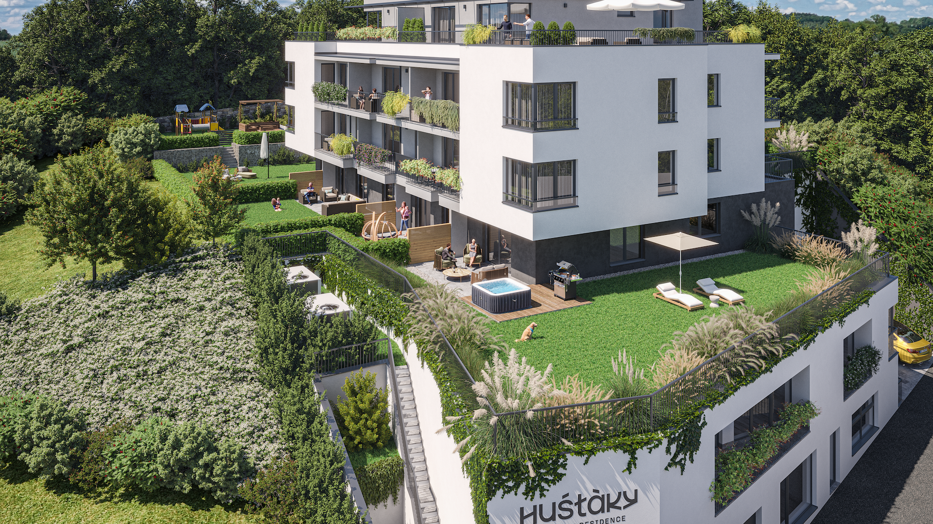 Huštáky Boutique Residence je komorný projekt s 18 bytmi, ktorý vzniká v prestížnej lokalite Starého Mesta v Košiciach.Jeho terasovitá architektúra a výhľady na mesto zaujmú na prvý pohľad. Projekt sa nachádza v tichej slepej ulici, len 7 minút pešo od historického centra, a ponúka súkromný vstup do mestského parku. Okrem toho je súčasťou projektu aj komunitná zóna s grilovacou terasou, detským ihriskom a spoločnými záhradkami.
