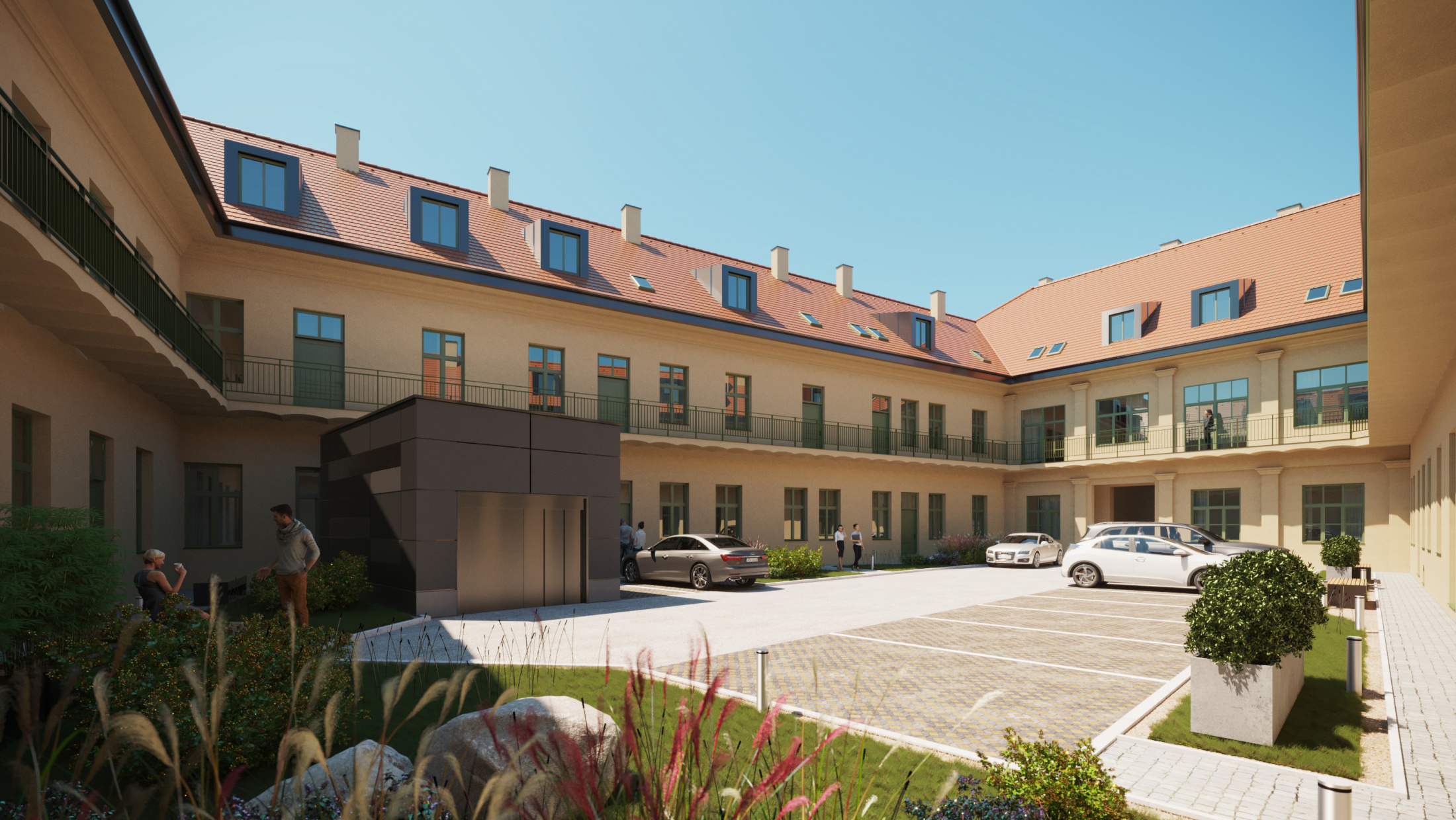 Projekt zahŕňa aj 23 parkovacích miest v podzemnej garáži a 7 vonkajších státí vo vnútrobloku, pričom všetky parkovacie miesta sú širšie ako požadujú slovenské normy. Súkromný dvor poskytuje obyvateľom pokojné prostredie uprostred rušného mesta. Nebytové priestory sú vhodné najmä pre ordinácie alebo kancelárie, pričom s gastro prevádzkou sa v objekte nepočíta, čo zabezpečuje pohodlie rezidentov.