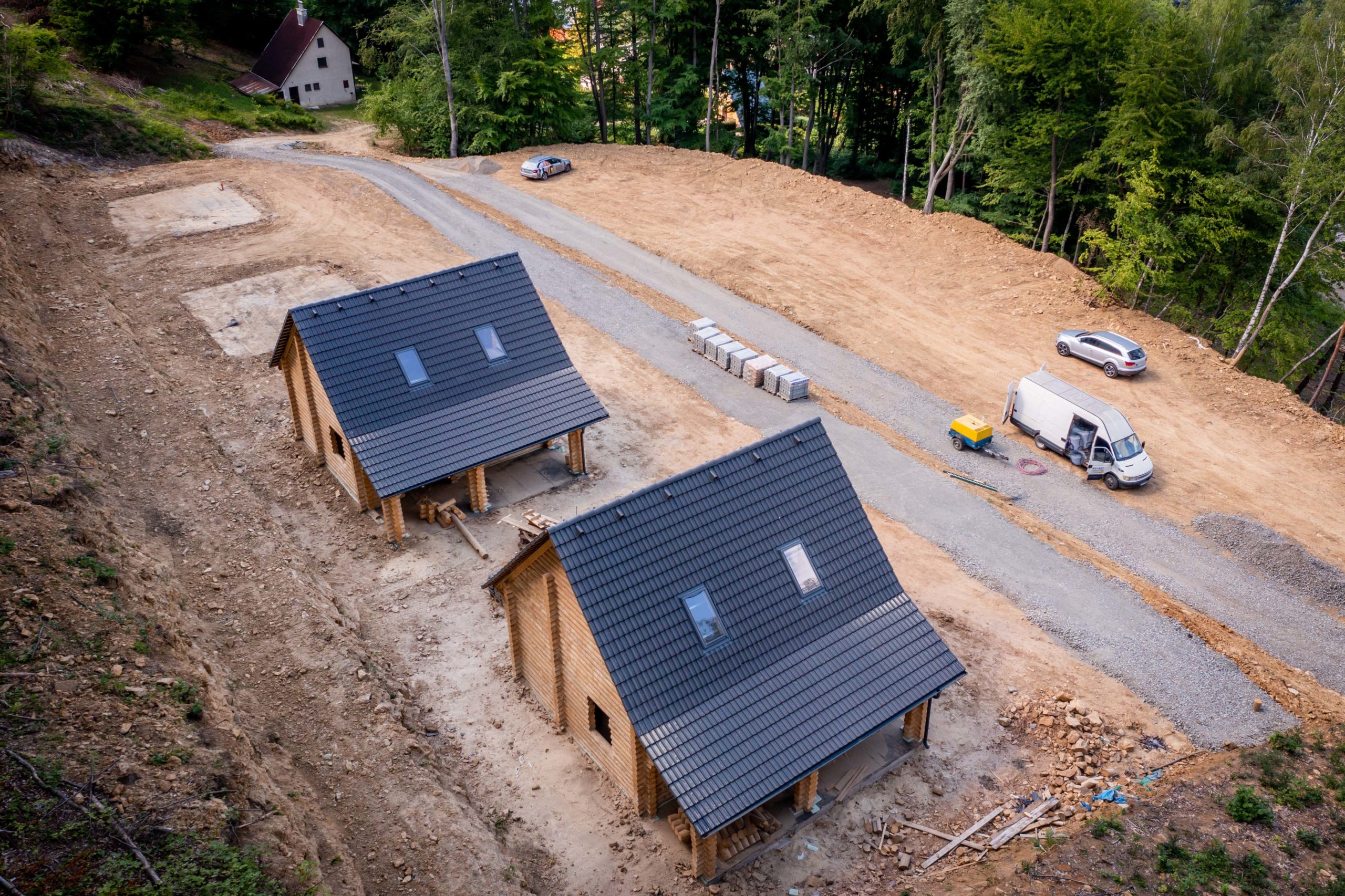 Zastavaná plocha každej chaty je 58,96 m² a úžitková plocha dosahuje 107,4 m². Konštrukcia je zo smrekového dreva, strechy sú pokryté krytinou Bramac Platinum antracit. Chaty majú plastové okná a dvere s trojsklom v antracitovom prevedení. Vykurovanie zabezpečuje infra podlahové vykurovanie značky Caleo. Pripojenie na elektrinu, spoločný vodojem a vlastnú žumpu je samozrejmosťou.