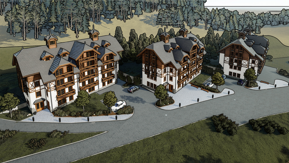 Každý apartmánový dom má vlastné parkovisko a plánovanú vegetačnú úpravu okolia. Projekt je ideálny pre tých, ktorí hľadajú pokojné miesto na víkendový oddych alebo aktívnu dovolenku v prírode.