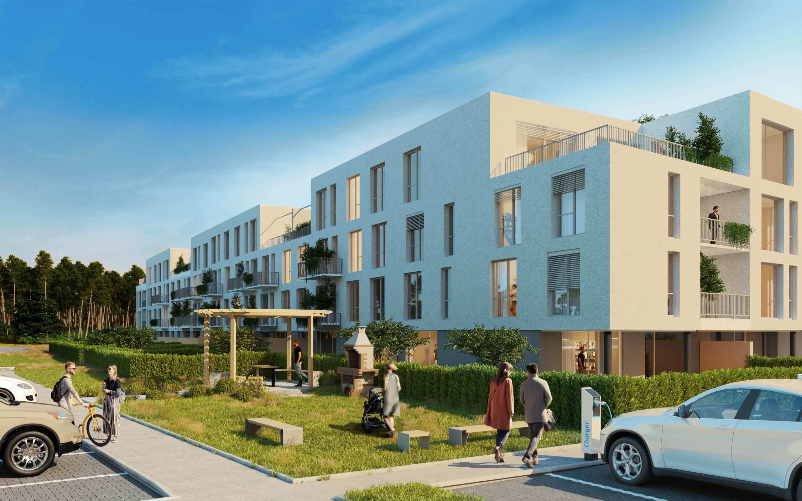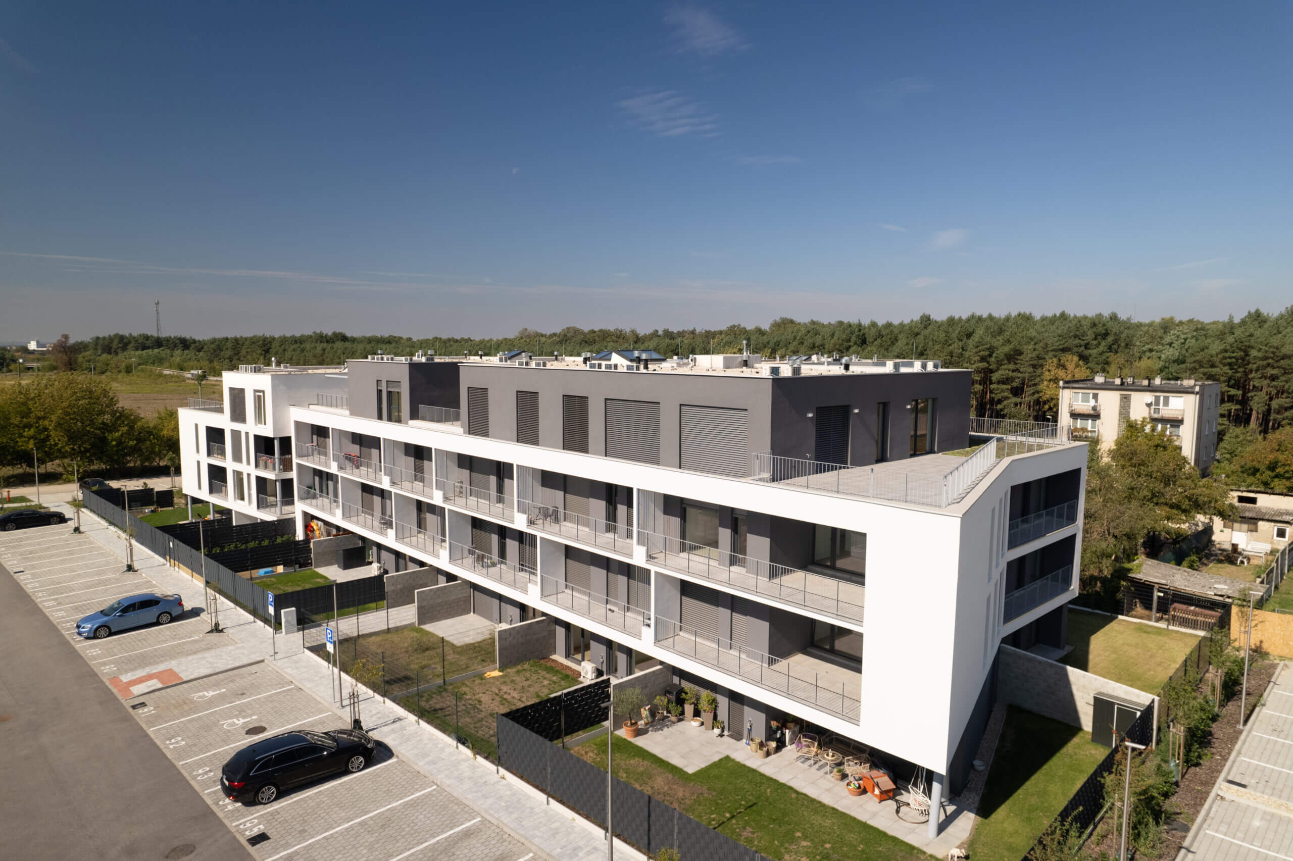 V štandarde sú elektrické žalúzie, podlahové kúrenie, klimatizácia a predpríprava na smart technológie aj nabíjanie elektromobilu. Byty sú navrhnuté s dôrazom na funkčnosť a pohodlie. Bonusom je pokojné prostredie v blízkosti cyklotrás a prírody.