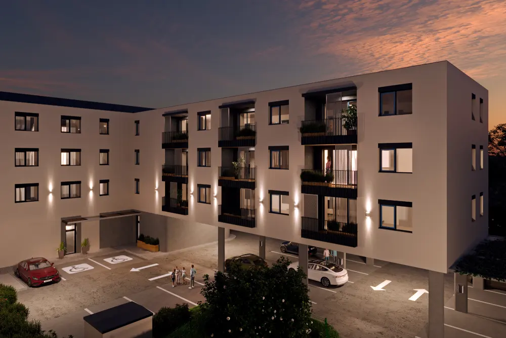 Štandard zahŕňa laminátové podlahy, bezpečnostné dvere, obklady, sanitu, elektrické rozvody a prípravu na klimatizáciu a vonkajšie žalúzie. V kúpeľniach je podlahové kúrenie, v izbách radiátory. Objekt je uzatvorený, plný zelene, s detským ihriskom a pripravený aj pre elektromobily.