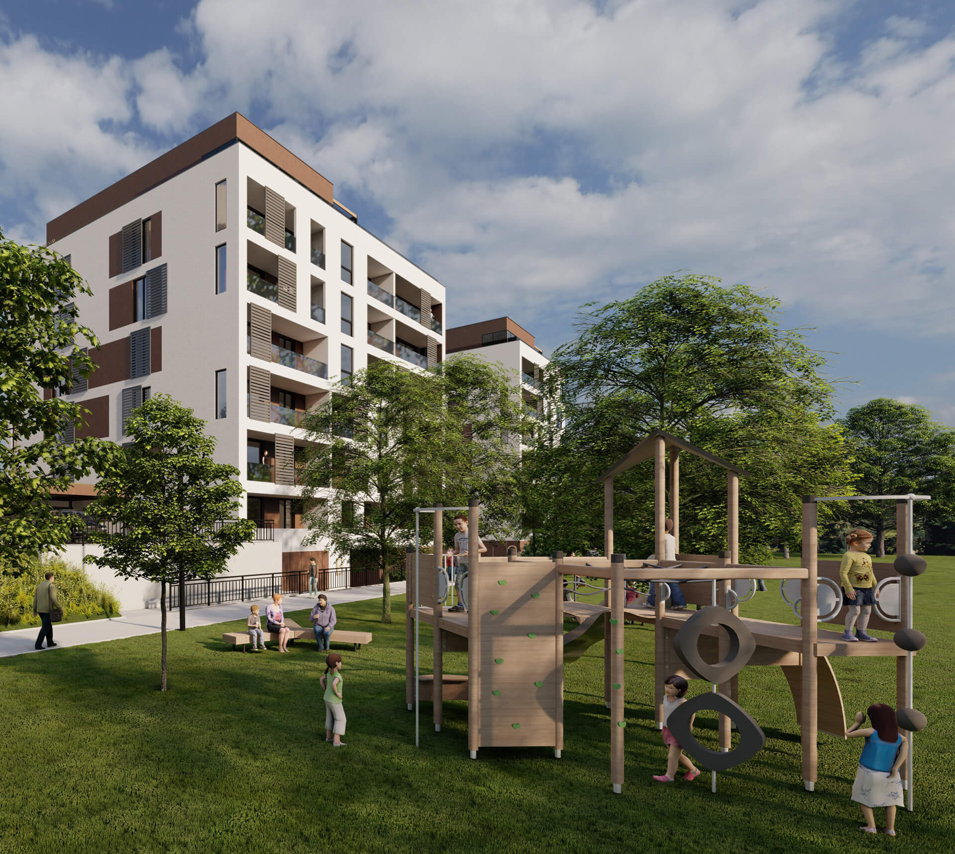 Byty sú rozdelené do štyroch kategórií – od jednoizbových po štvorizbové jednotky. Väčšie byty sa nachádzajú na 1. NP s predzáhradkou alebo na najvyššom podlaží so strešnými terasami. Dispozície bytov sú premyslené – každá jednotka má loggiu, množstvo úložného priestoru a je orientovaná pre dostatok denného svetla. Dôraz sa kládol aj na bezbariérovosť a komfort všetkých obyvateľov.
