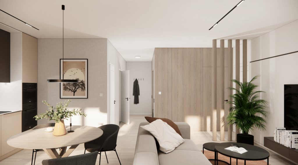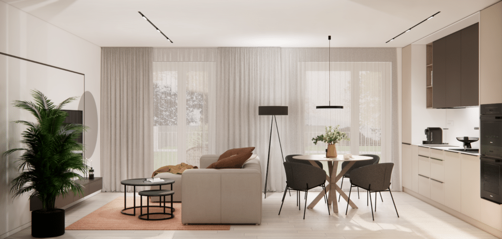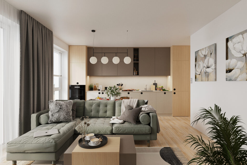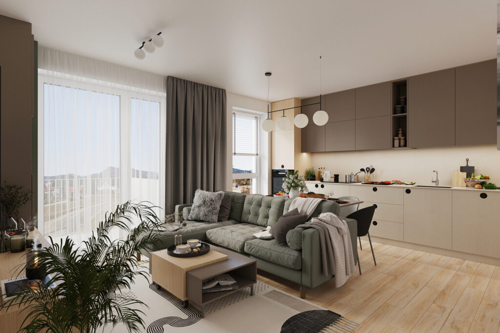 Byty sa predávajú vo vysokokvalitnom štandarde – súčasťou sú značky ako Villeroy&Boch, Kludi či Egger. Nechýbajú SMART riešenia pre ovládanie domácnosti na diaľku, teplovodné podlahové vykurovanie a energeticky úsporné technológie, vďaka ktorým domy spadajú do triedy A0.