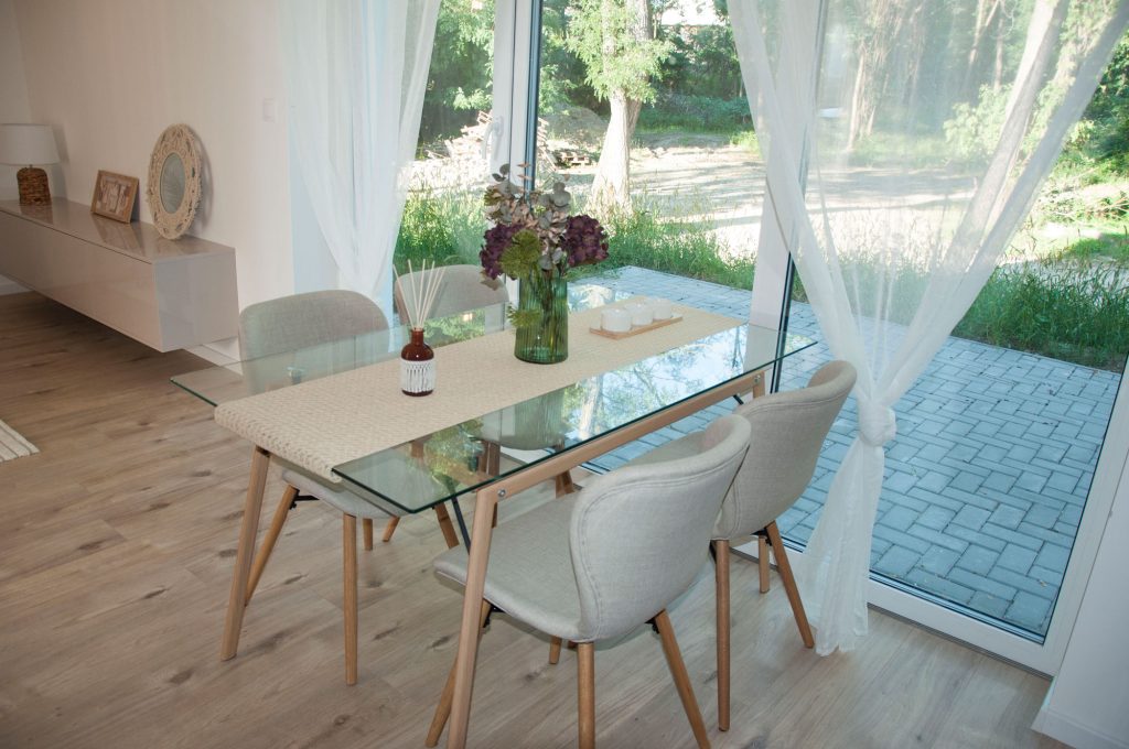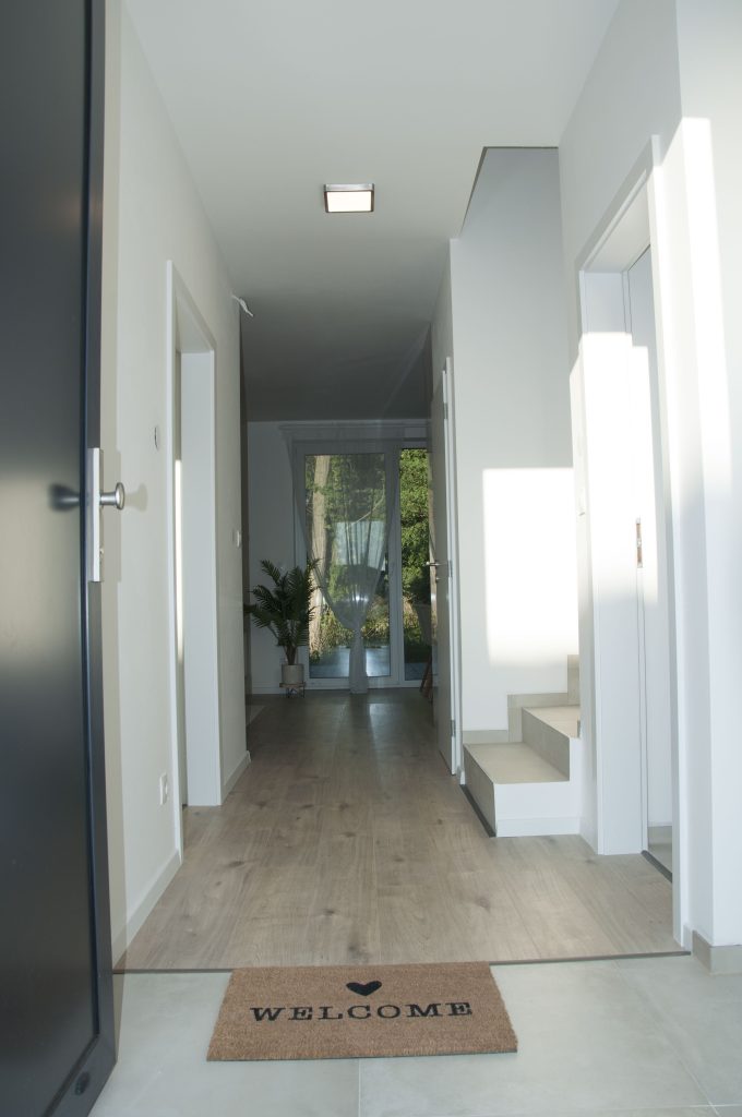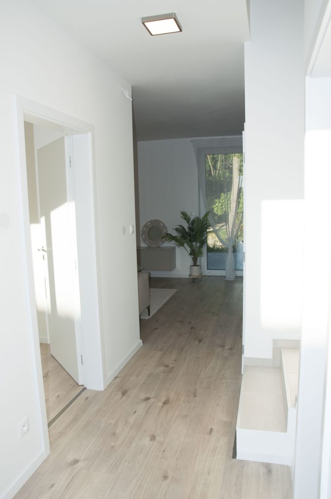 V štandardnom prevedení sú domy vybavené laminátovými podlahami, keramickými obkladmi a dlažbami, sanitou vrátane vane, sprchového kúta, dvoch WC a umývadiel. Interiérové dvere sú fóliované s obložkovými zárubňami.Súčasťou exteriéru je terasa zo zámkovej dlažby s rozmermi 5 × 3 m.