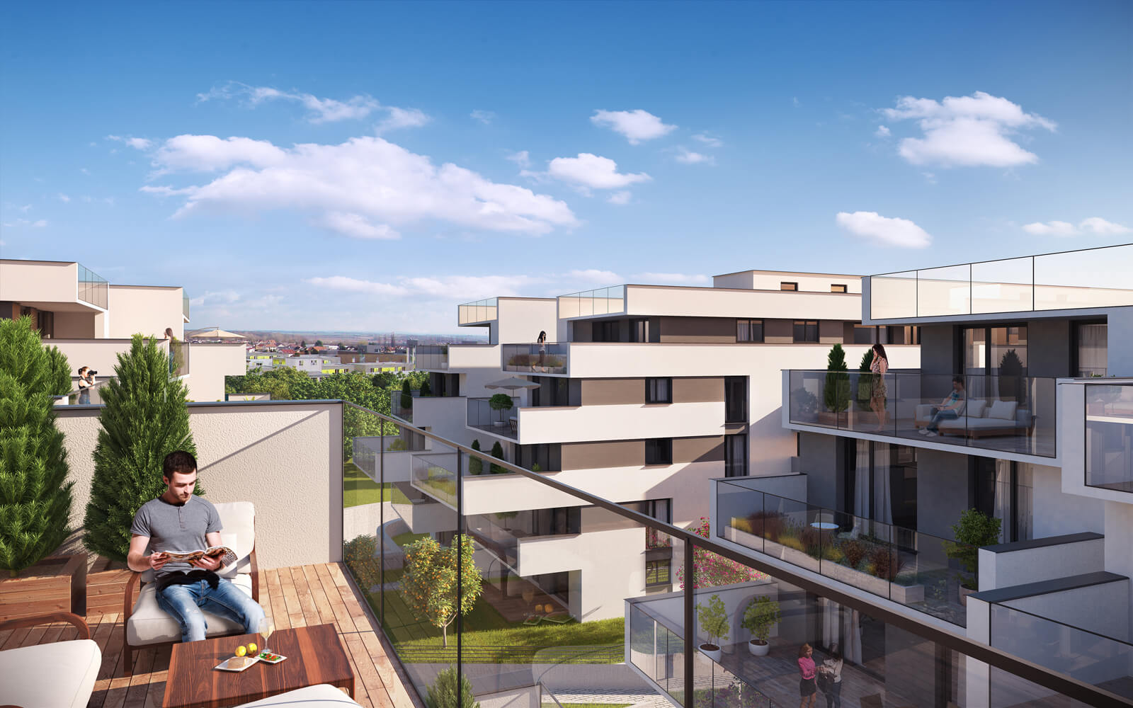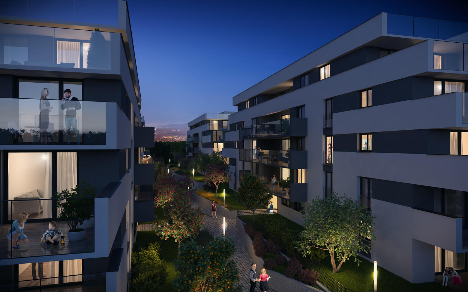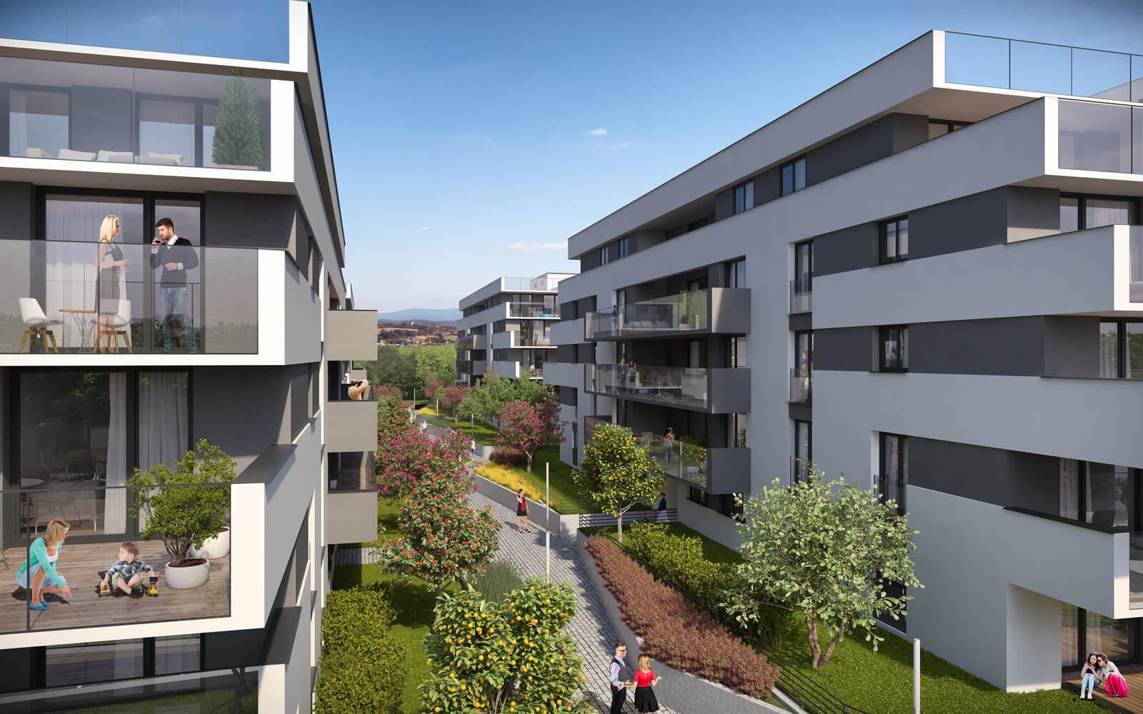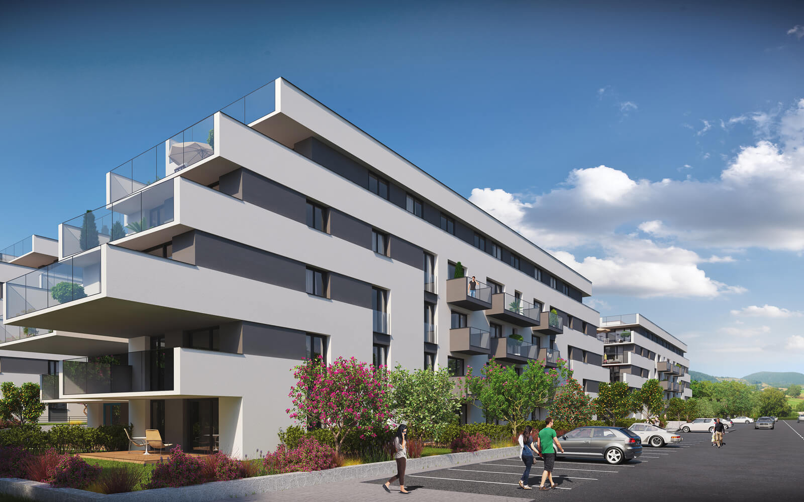 Súčasťou projektu je oddychová zóna s parkom, detským ihriskom a komunitnými plochami. Na prízemí budov sa nachádzajú obchodné prevádzky, v podzemí 198 parkovacích miest doplnených o 52 státí na povrchu. Bytový dom je bezbariérový a navrhnutý pre rôzne typy obyvateľov – od mladých párov po rodiny.