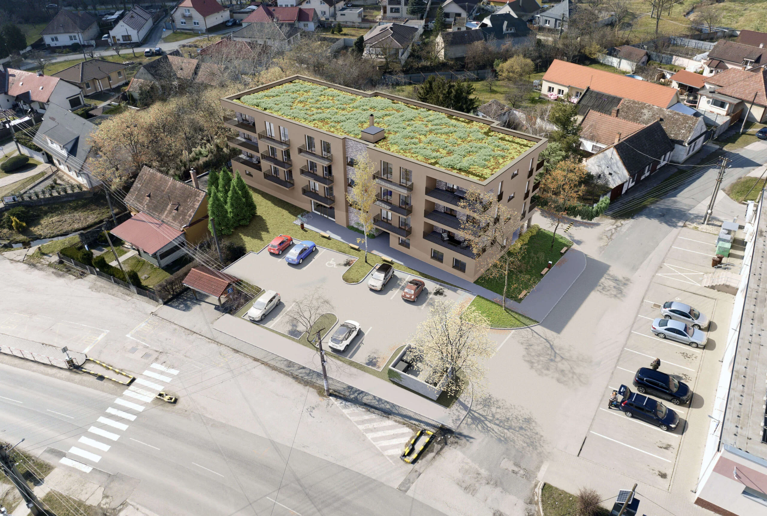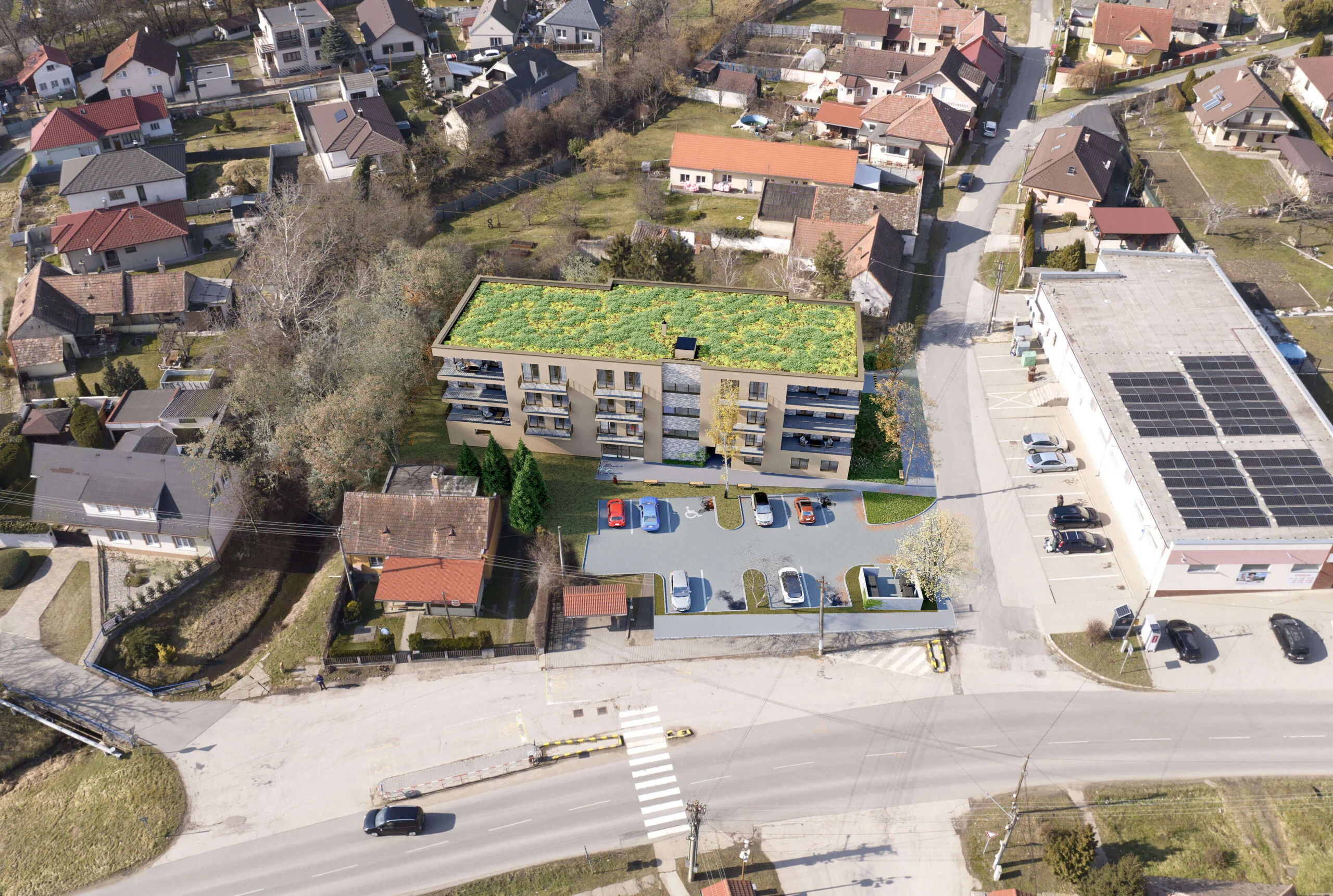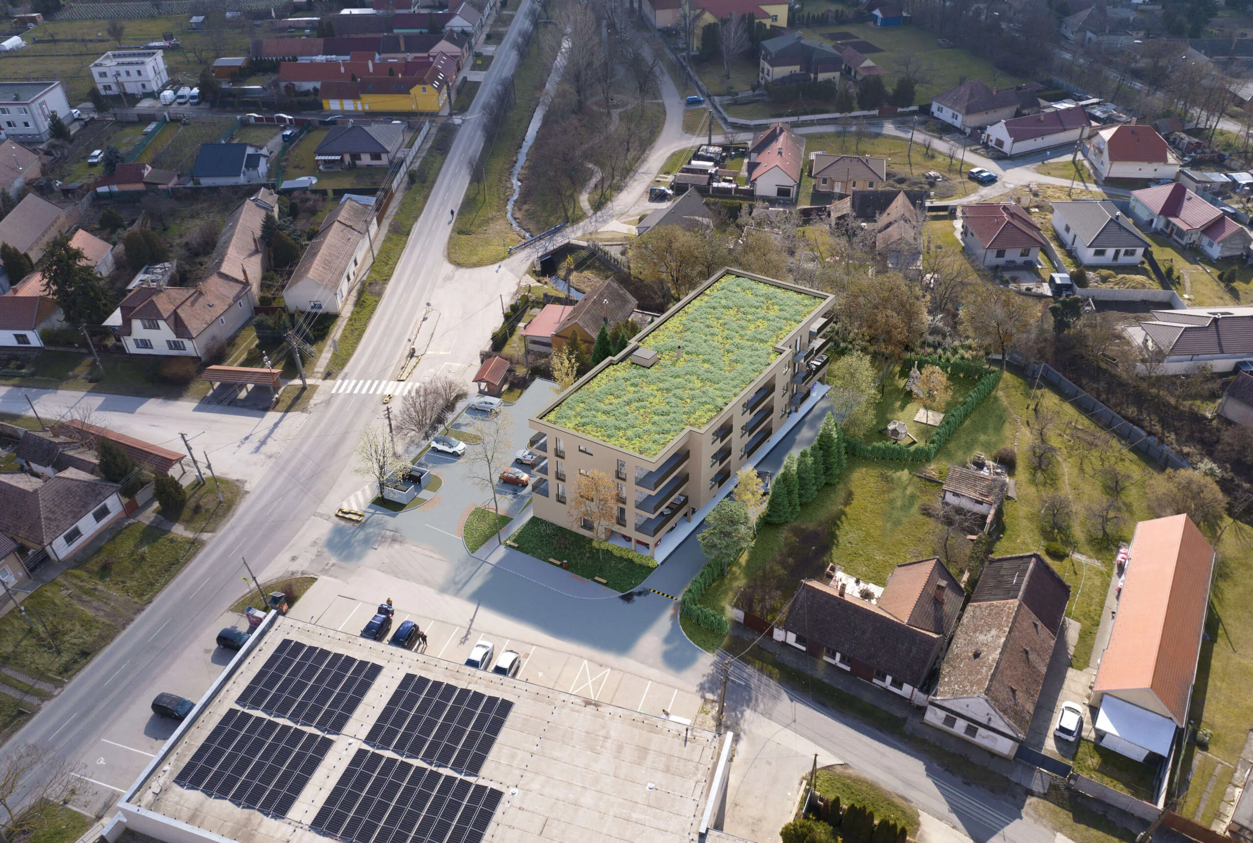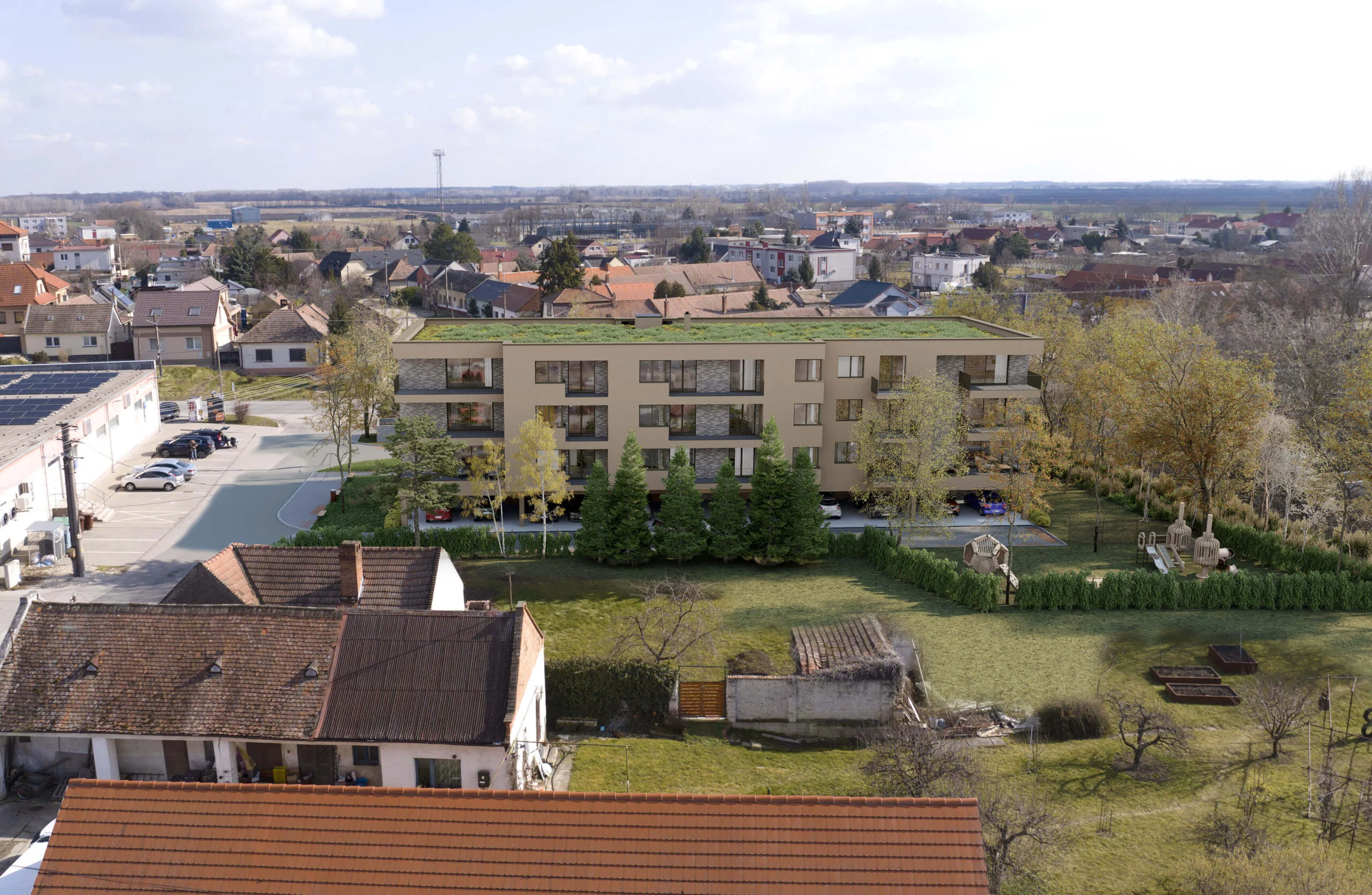 Srdce Grobu je nový bytový dom v centre obce Veľký Grob, ktorý spája pokoj vidieka s dobrou dostupnosťou do Bratislavy, Senca aj Trnavy. Nachádza sa priamo pri obchode Jednota, obecnom úrade a autobusovej zastávke, takže bežné vybavovačky zvládnete pár krokmi od domu. Projekt ráta s novými parkovacími miestami a veľkými plochami zelene, ktoré spríjemnia bývanie aj výhľad z okien.