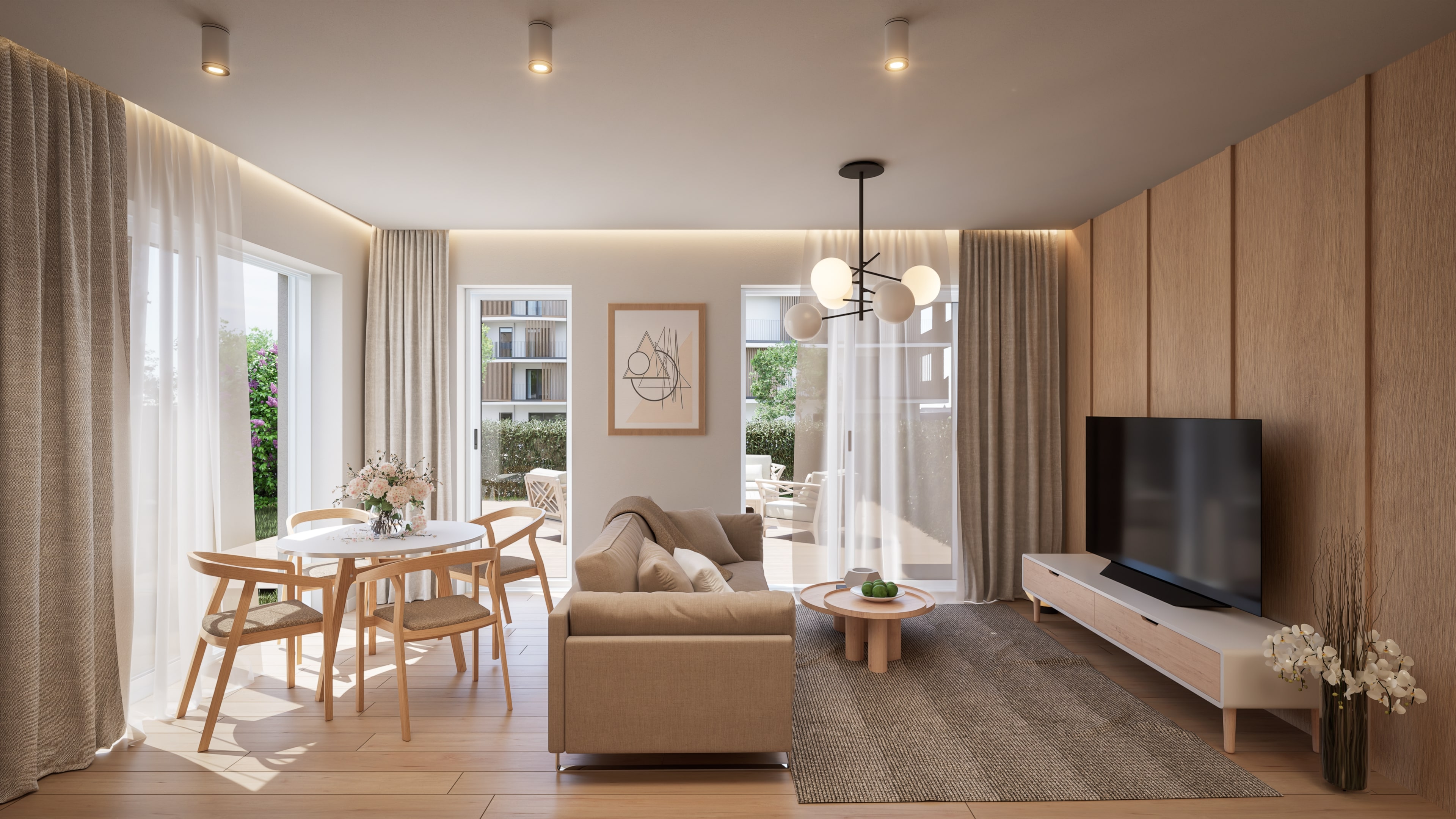 Byty sú vybavené nadštandardne: v cene je parkovanie, kobka, klimatizácia, elektrické žalúzie a návrh interiéru. Projekt kladie dôraz na kvalitu a ekologické riešenia, čím vytvára príjemné a moderné bývanie.