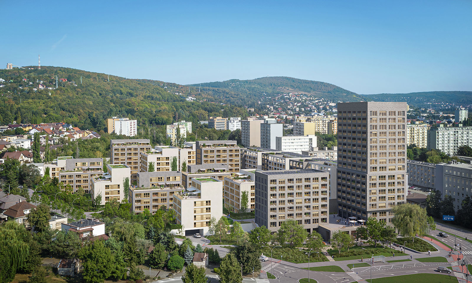 Súčasťou areálu budú detské ihriská, fitness centrum, reštaurácie, kaviareň či psie venčovisko. Investor tiež plánuje supermarket, ambulanciu a detskú skupinu. Projekt myslí aj na udržateľnosť – používa ekologicky šetrné materiály a prináša množstvo zelene aj vnútroblokové oddychové zóny.